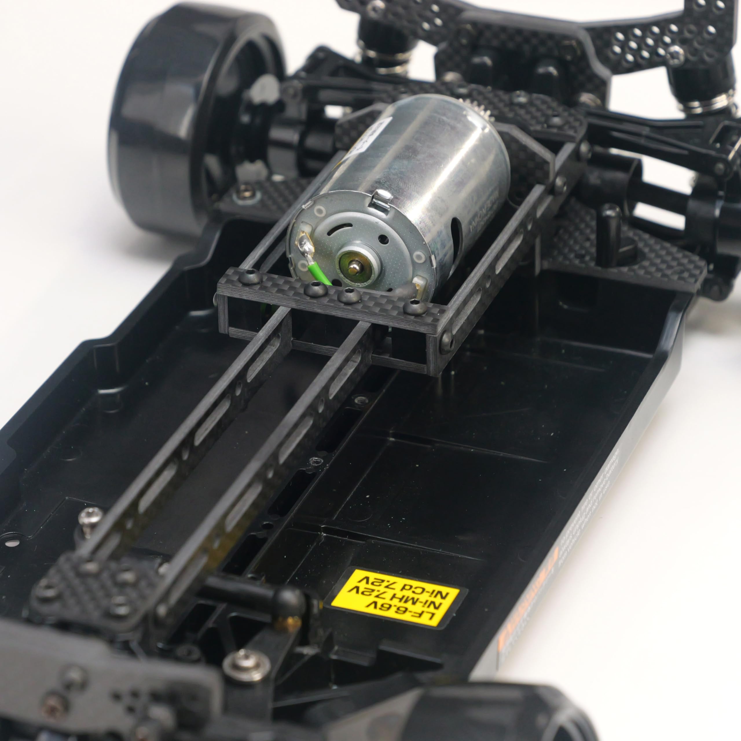 This product is compatible with various Tamiya TT-02 models and can be installed without modification. It can be installed on MRC 2WD Drift Conversion Kits as well as stock 4WDs. Mounting the motor high and in the center of the car makes it easier to control the car's movements and initiate drifts. Installation requires a Phillips head screwdriver and a 2mm hex wrench. This motor mount (without upper deck) attaches the motor to the center of the TT-02 chassis. This product is compatible with various Tamiya TT-02 models and can be installed without modification. It can be installed on MRC 2WD Drift Conversion Kits as well as stock 4WDs. Mounting the motor high and in the center of the car makes it easier to control the car's movements and initiate drifts.