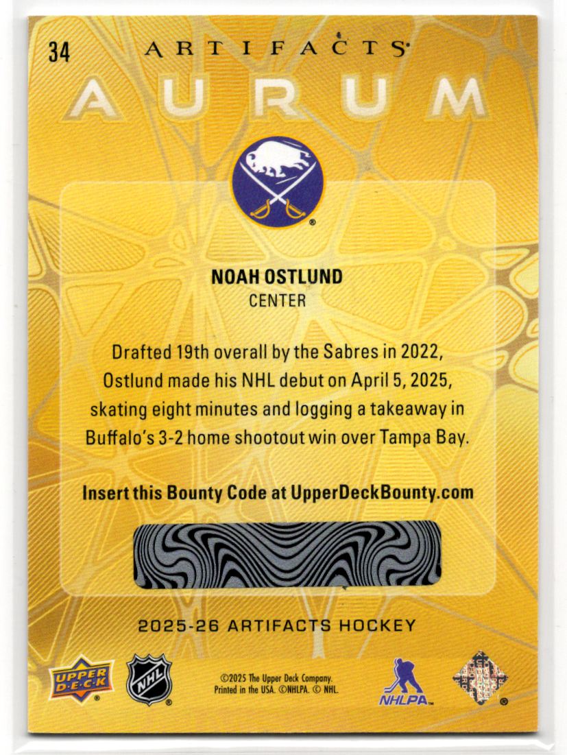 2025-26 Upper Deck Artifacts Aurum Rookie Noah Ostlund Rookie Buffalo Sabres #34
