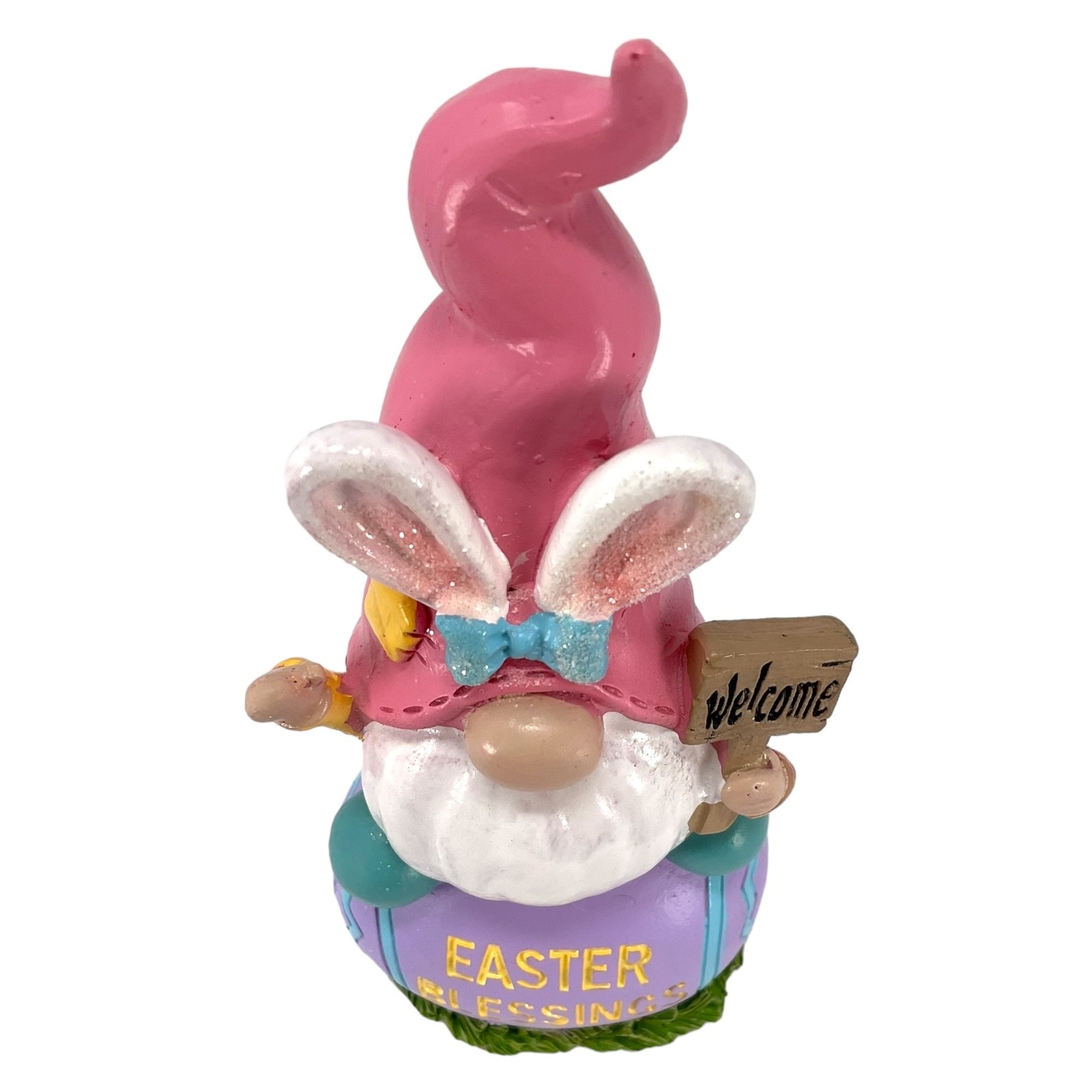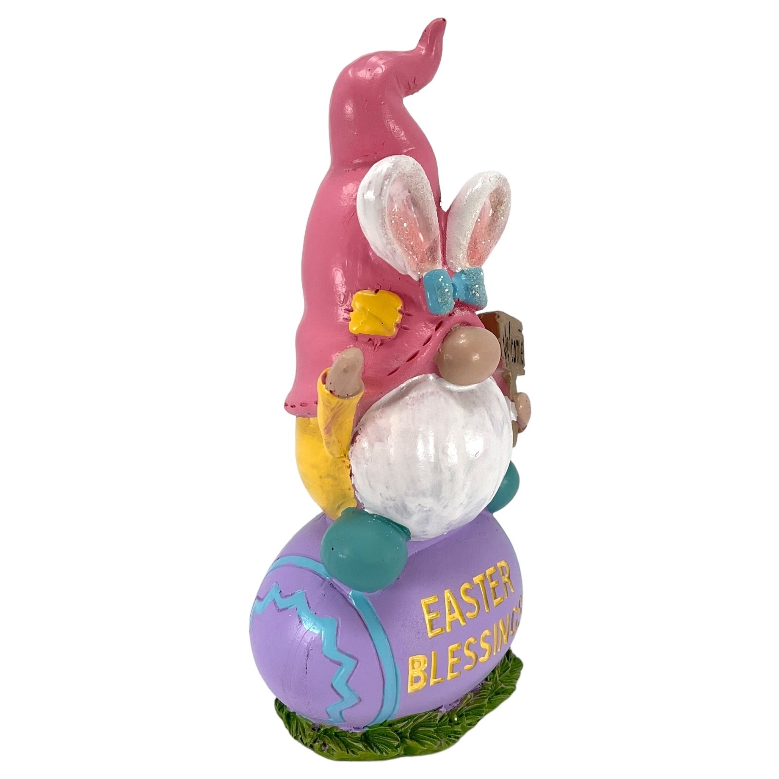 Pink Hat Gnome with Bunny Ears on Easter Blessings Easter Egg Figurine 6 Inch
