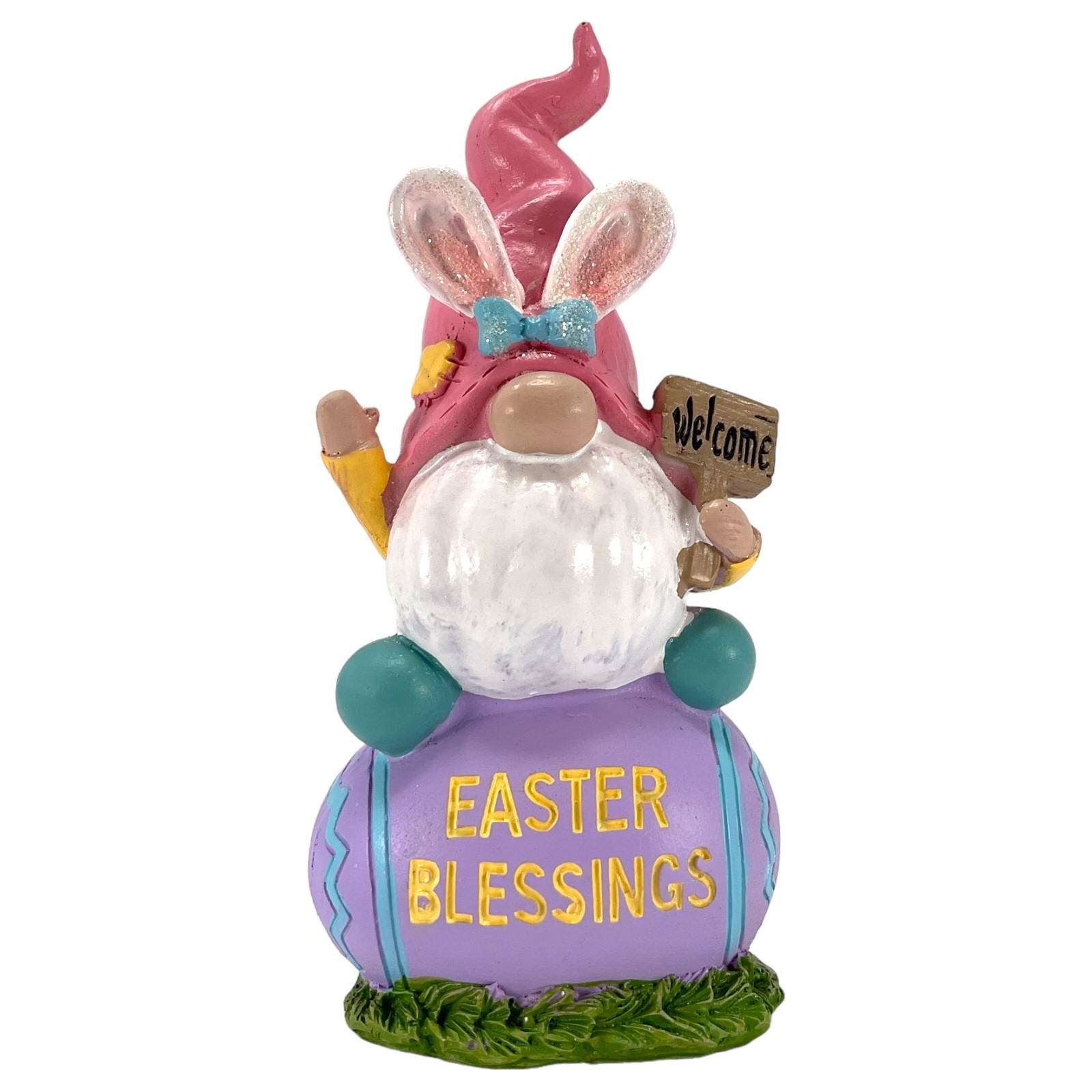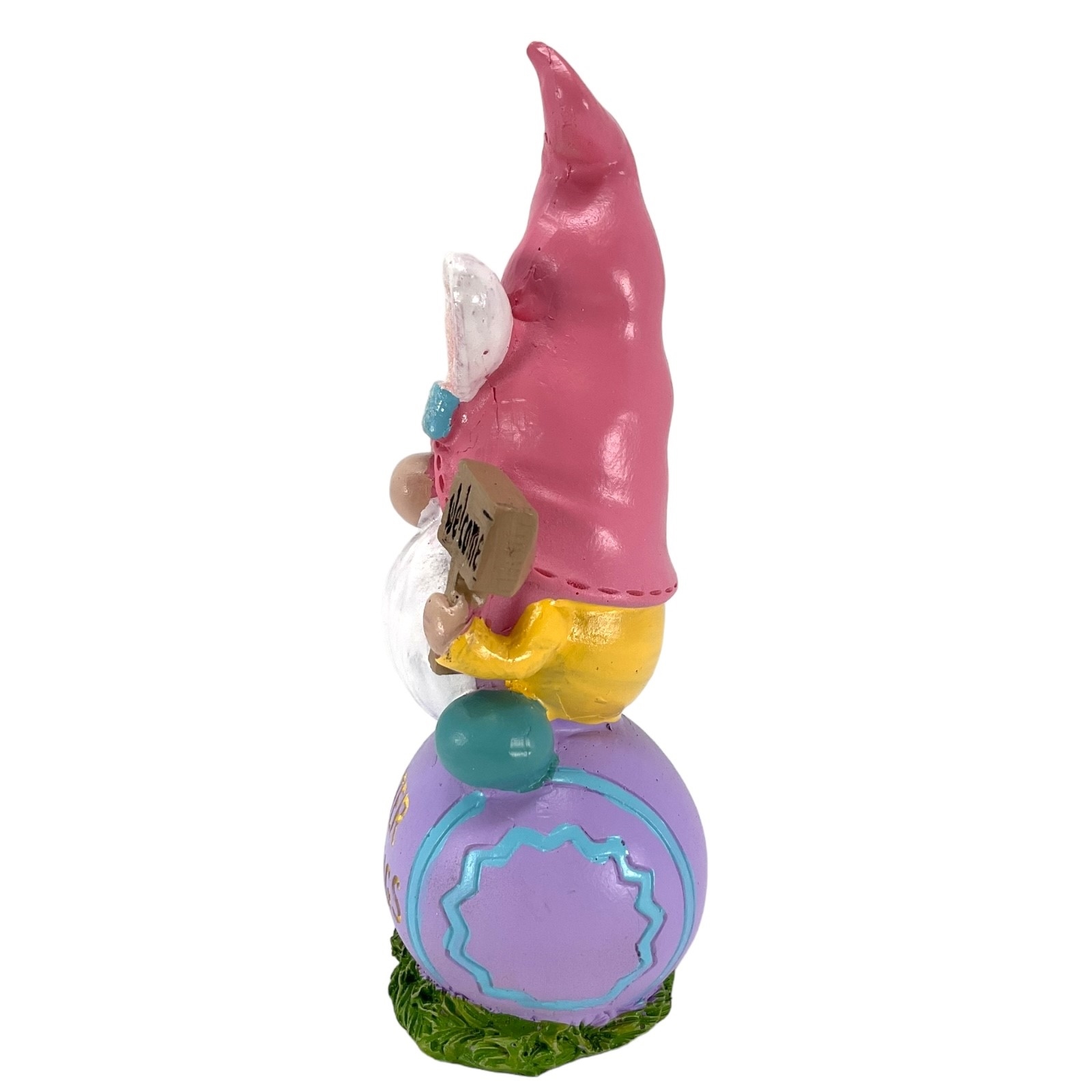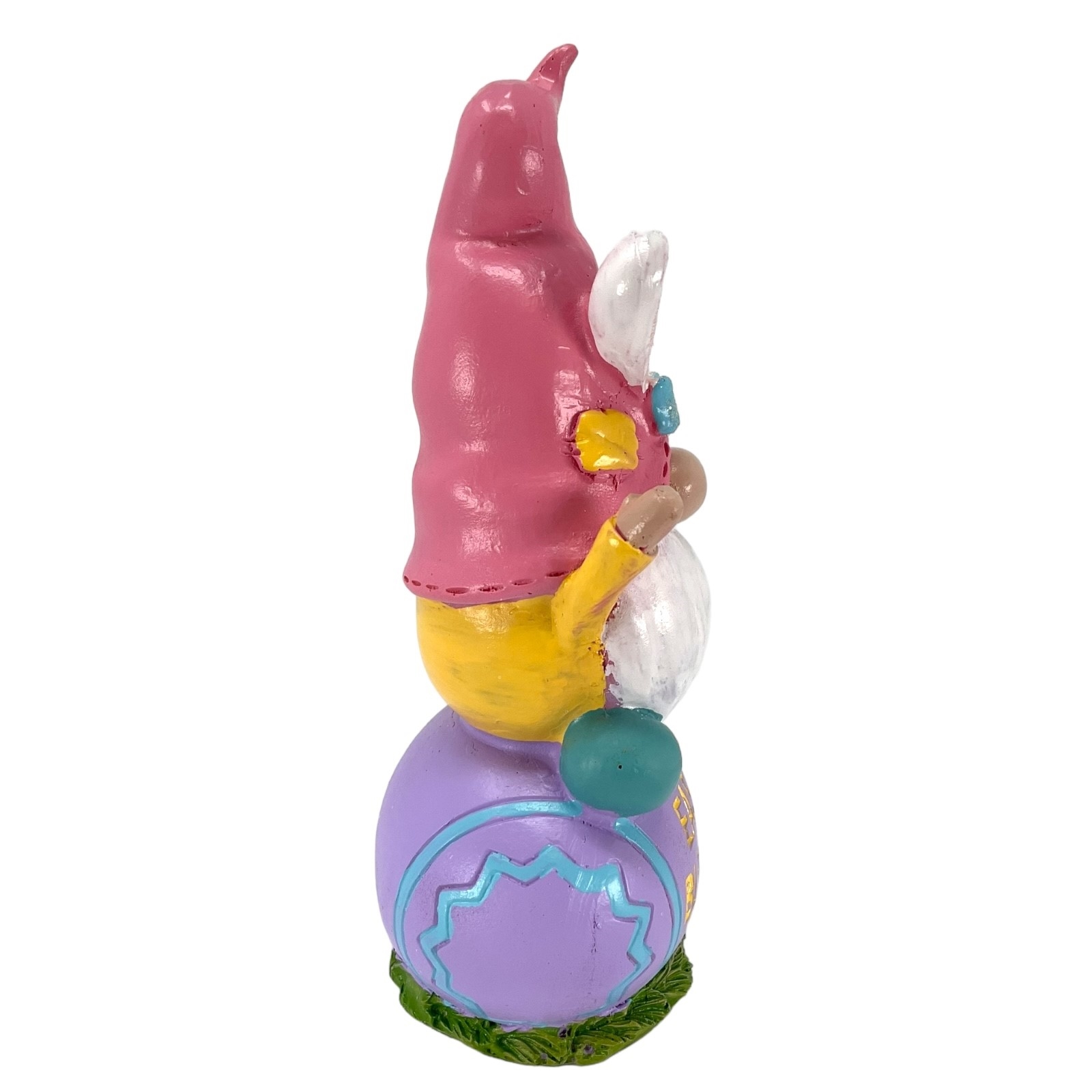 Gnome on Easter Egg Figurine. Made of Resin. Easter egg reads “Easter Blessings”. 6 Inch Height x 2.7 Inch Length x 2 Inch Wide.