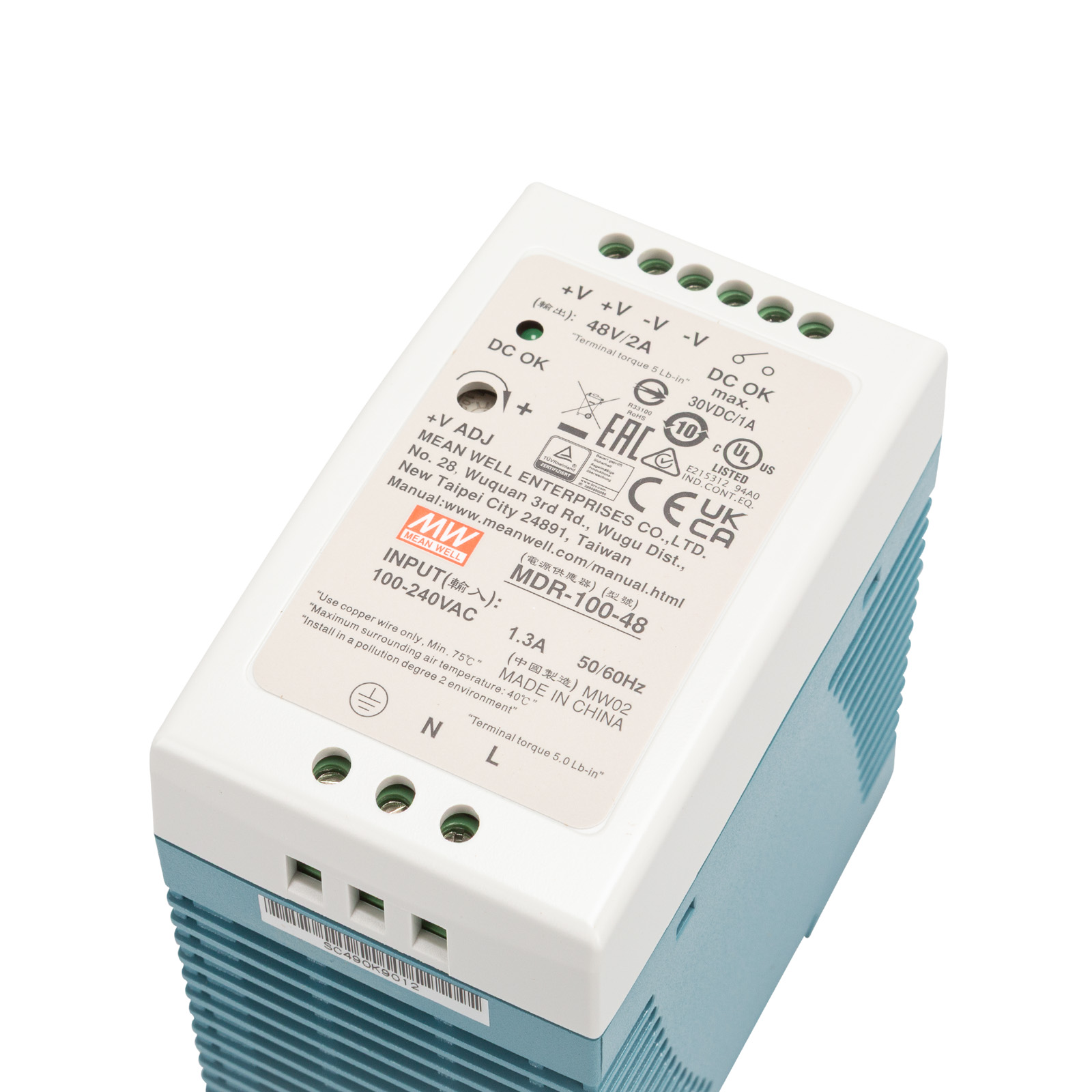 Alimentazione di commutazione a tatto in fase Einned per il montaggio della rotaia del cofano nell'alloggiamento in plastica, tensione di ingresso: 85-264VAC, basse prestazioni del minimo <1W, uscita relè DC OK