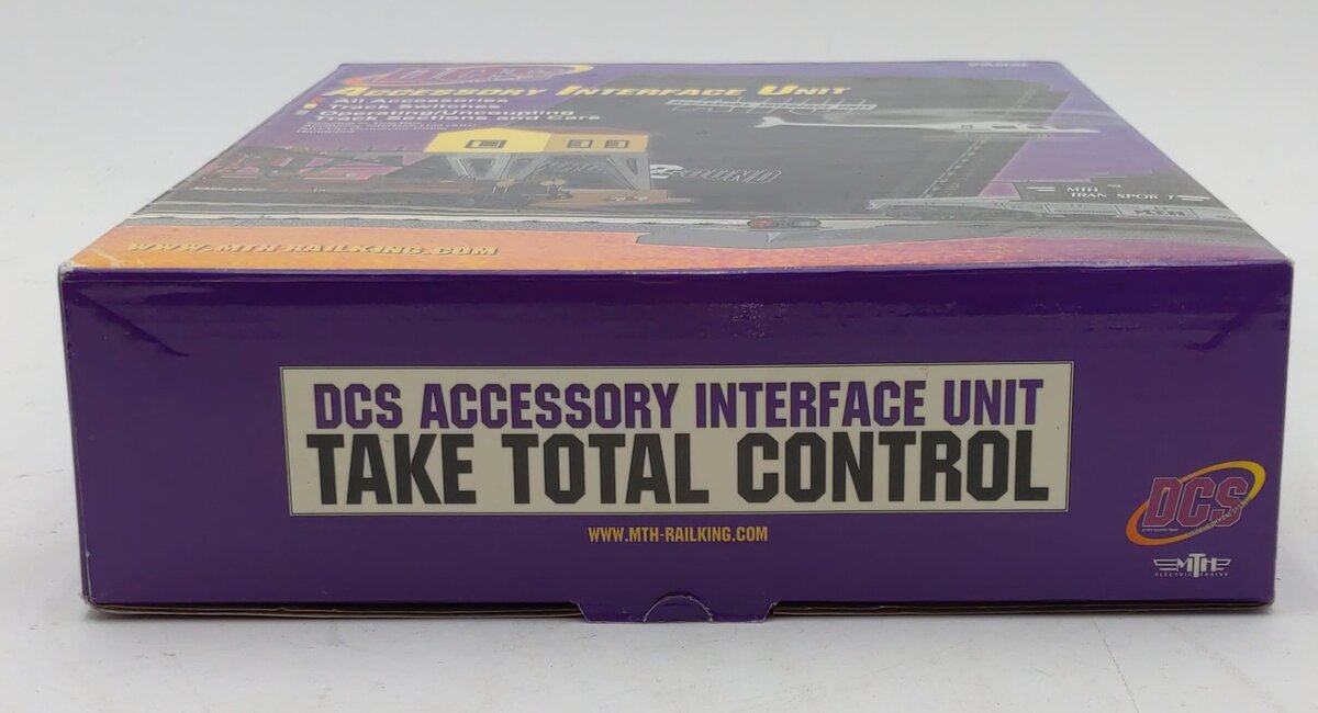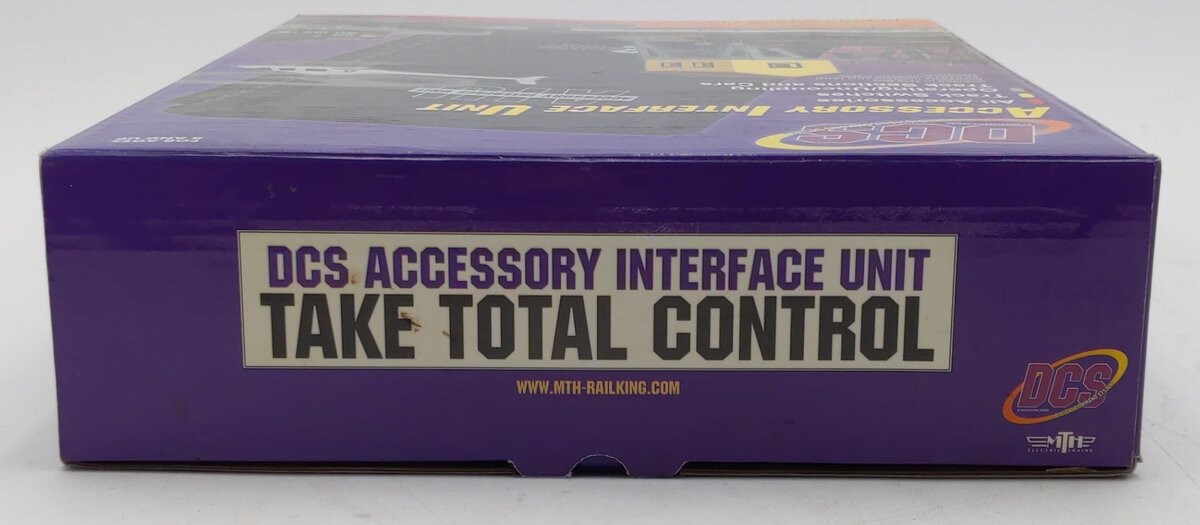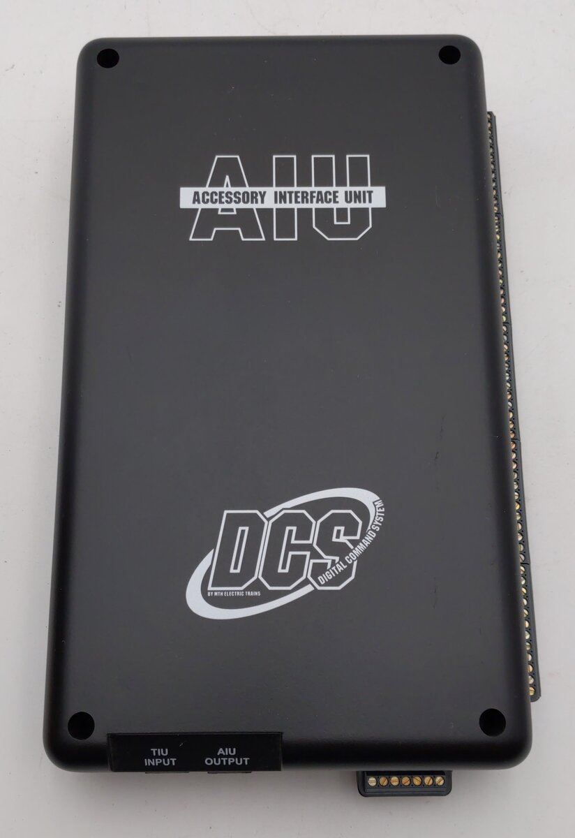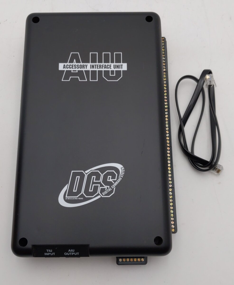 This is an MTH 50-1004 Digital Command System Accessory Interface Unit from 2000. Included is an AIU/TIU connector cable. This Accessory Interface Unit (AIU) turns the DCS System into a complete layout control system. Each AIU controls up to 10 accessories and switches (turnouts) and allows you to control routes and scenes through your remote control. Please see my pictures for additional features.