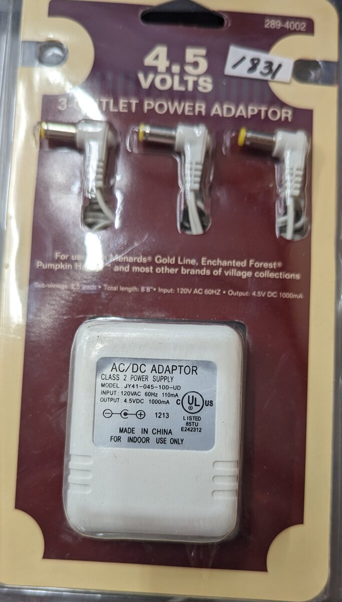 This is a Master Force 289-4002 4.5 Volts 3-Outlet Power Adaptor. This item can be used with Menards Gold Line, Enchanted Forest, Pumpkin Hollow and most other brands of village collections.