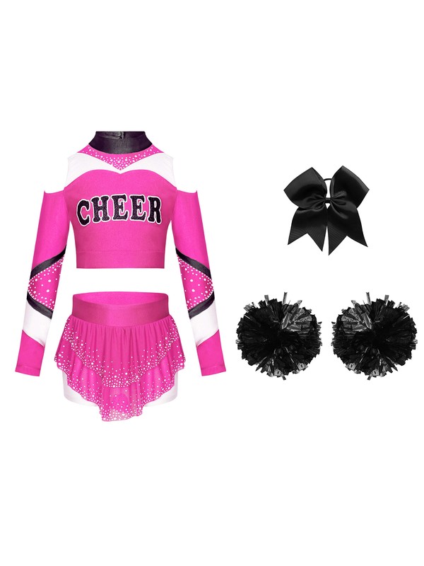 Girl’s cheerleading outfit makes your girl eye-catching from the show with color block and shiny rhinestones