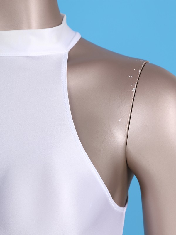 Womens Glossy Mock Neck Back Zipper Bodysuit Solid Color Sleeveless Leotard Swimwear .