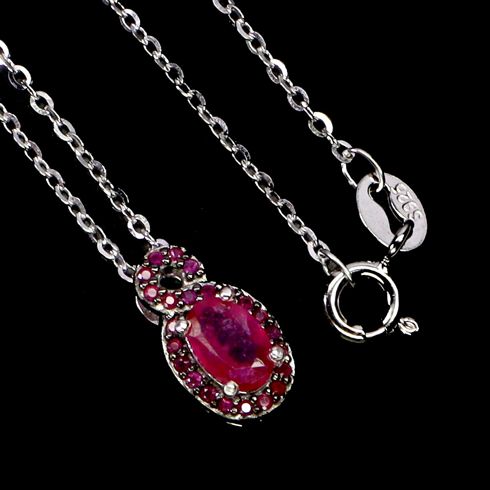 925 Sterling Silver Necklace Oval Ruby 6x4mm Gemstone No USA Import Fees