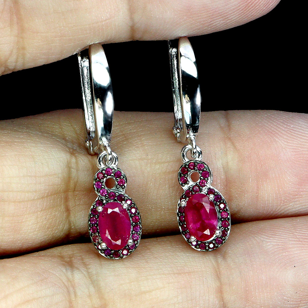 925 Sterling Silver Earrings Oval Ruby 6x4mm Gemstone Jewelry No USA Import Fees