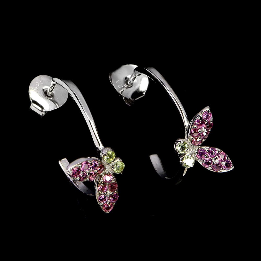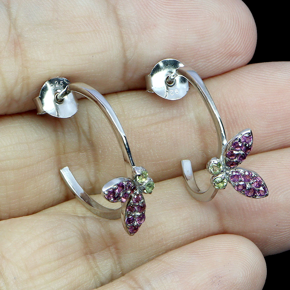 925 Sterling Silver Earrings Round Rhodolite Peridot Gemstone No USA Import Fees
