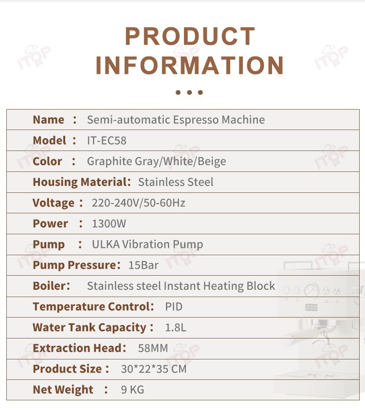 - Italian ULKA Water Pump,15Bar Pressure, Enjoy Fresh Coffee Quickly