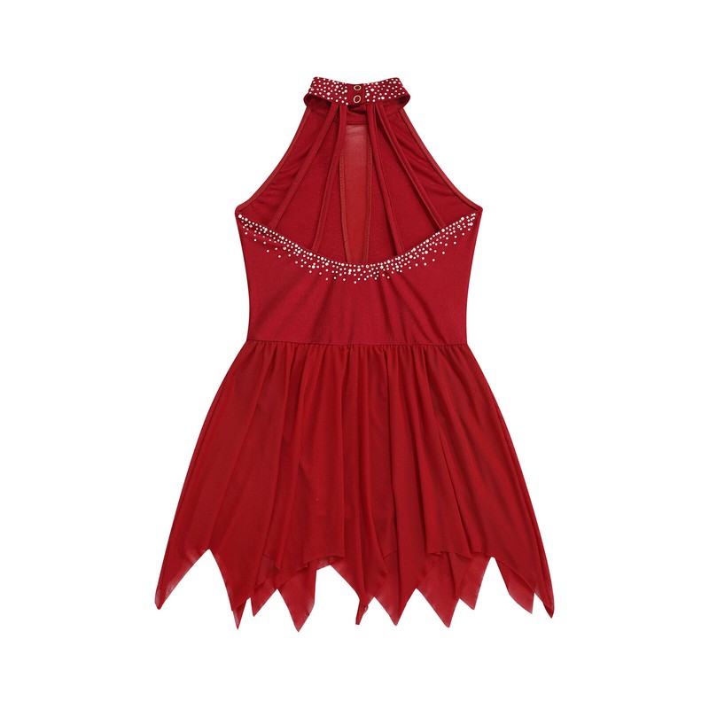 Shiny rhinestone details and asymmetrical skirt make girl dazzling, and beautify each movement of girl.