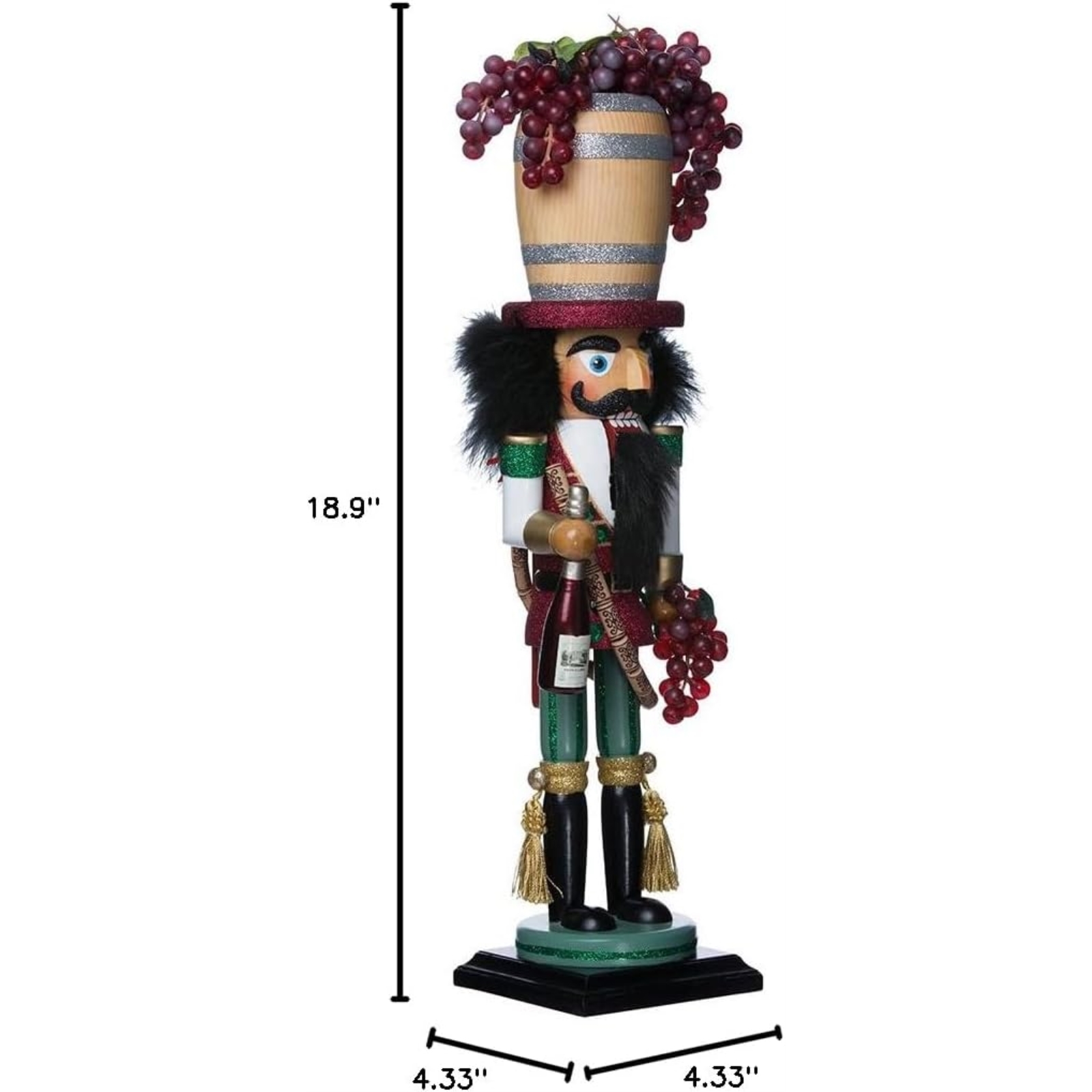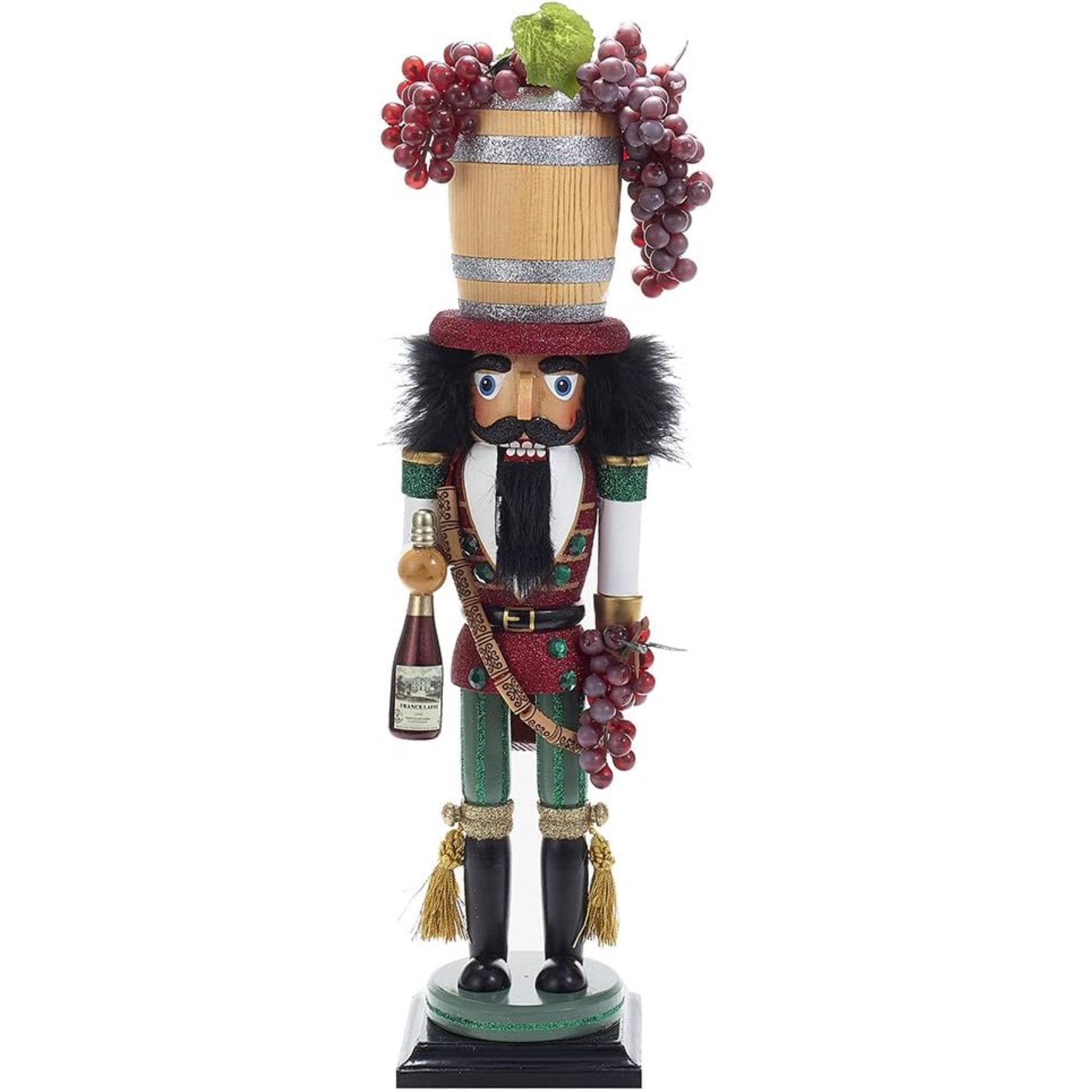 Wine Barrel Hat NutcrackerPart of the Hollywood collection by Holly AdlerMade from woodApproximately 18.9 inches tall (48 cm)Includes original manufacturers box and packagingMade by Kurt Adler.