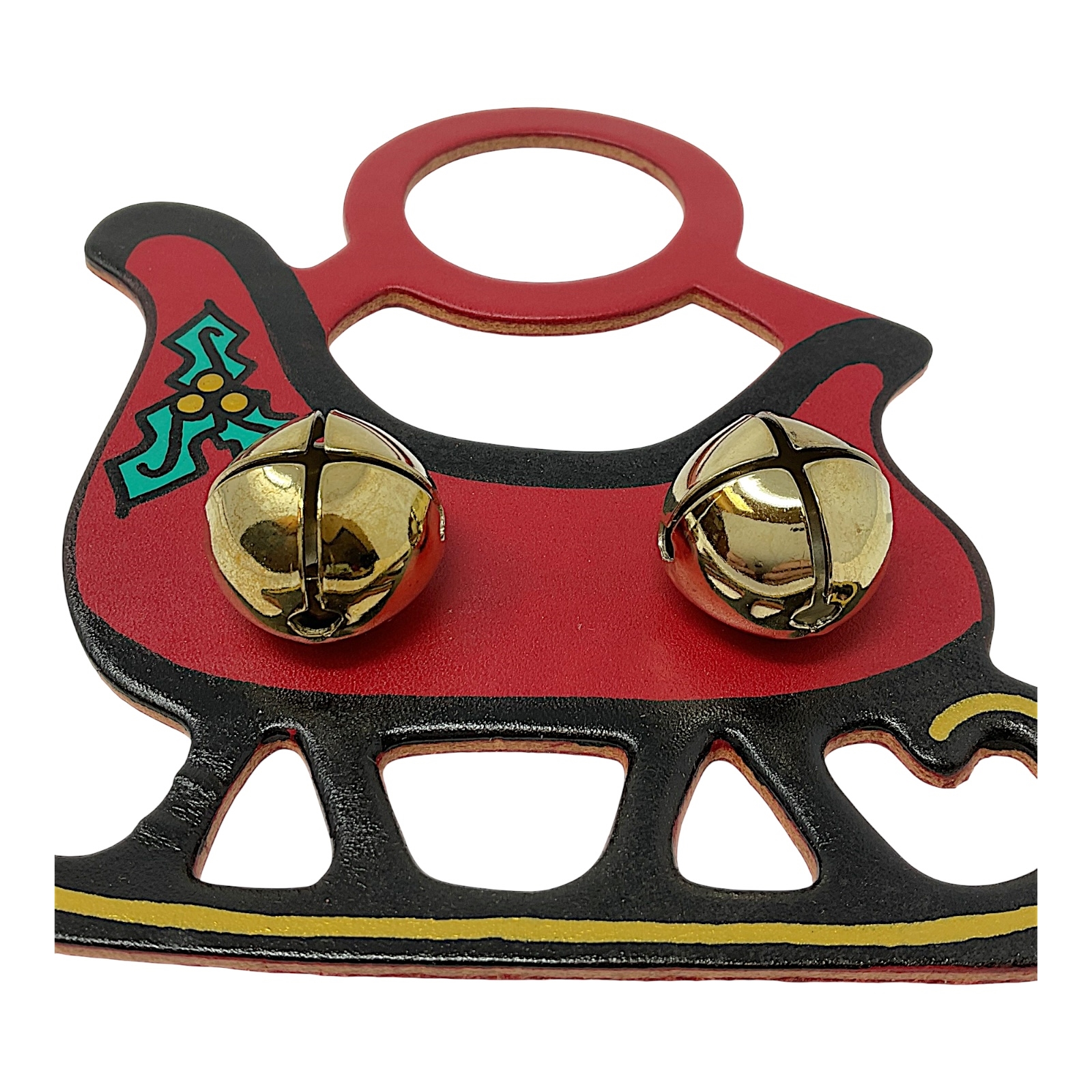 Red Christmas Sleigh Leather Sleigh Bell Door Knob Hanger Made in USA New