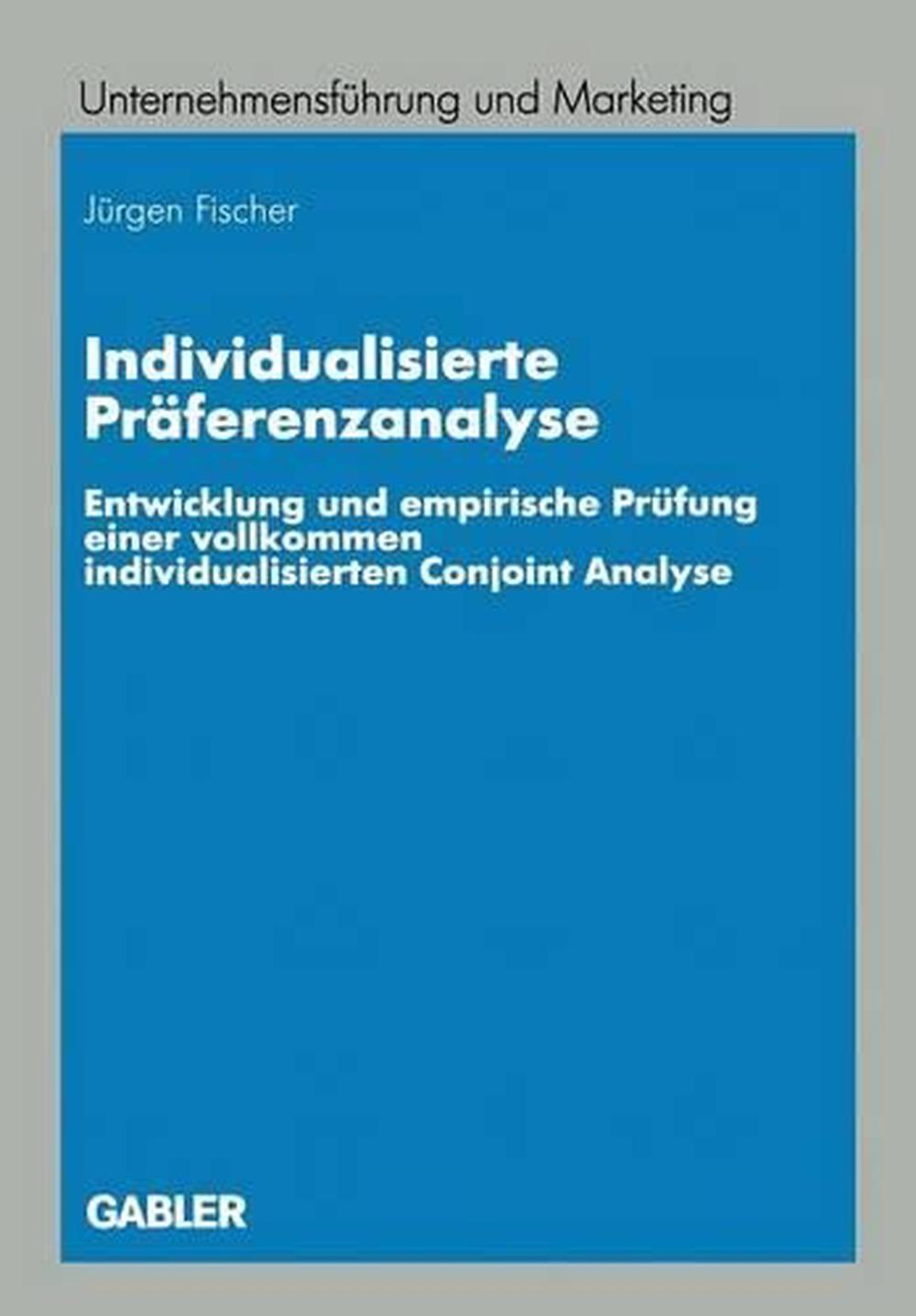 Description Jürgen Fischer entwickelt eine neue Variante einer vollkommen individualisierten Conjoint Analyse (ICA), mit deren Hilfe eine Präferenzanalyse auf Individualebene durchgeführt werden kann