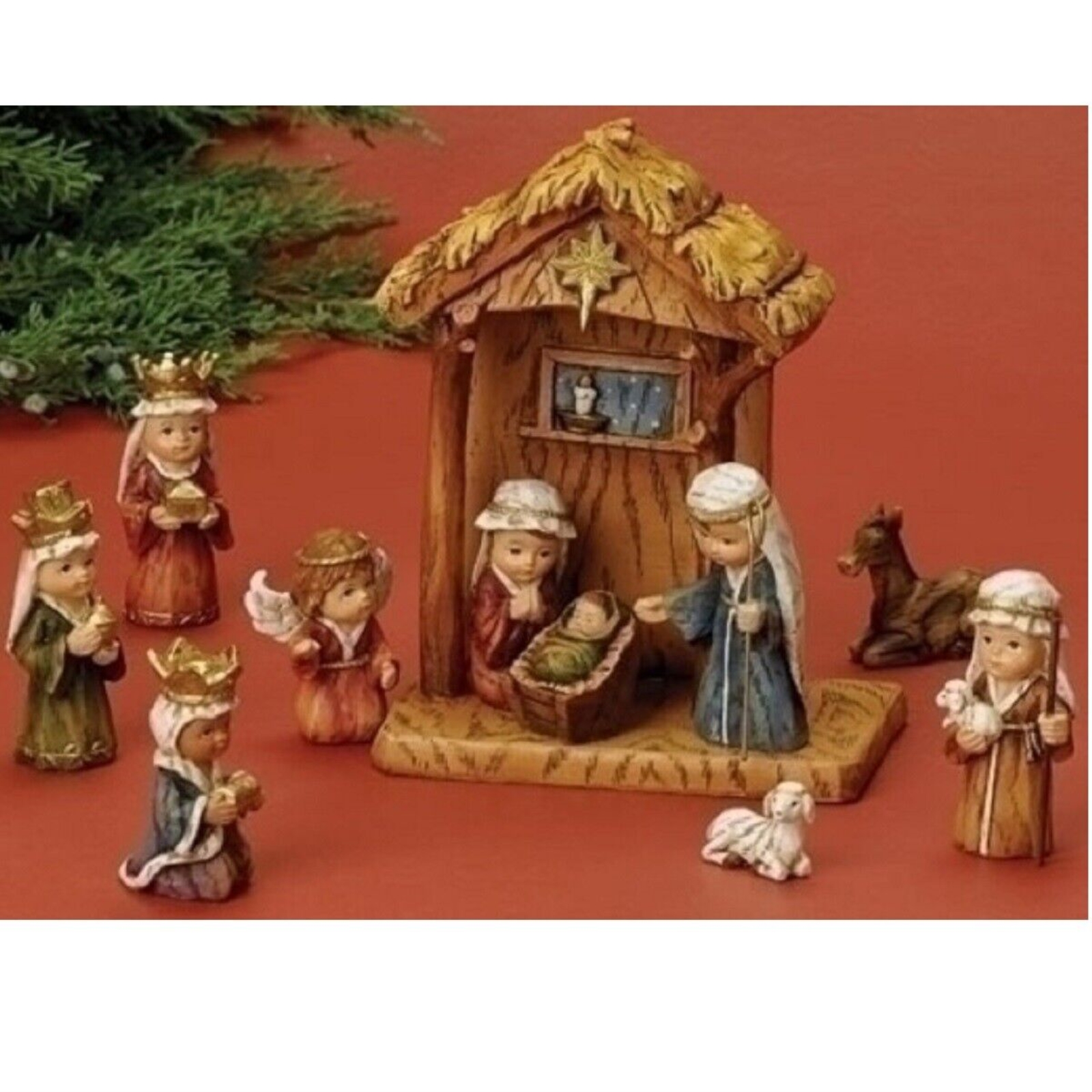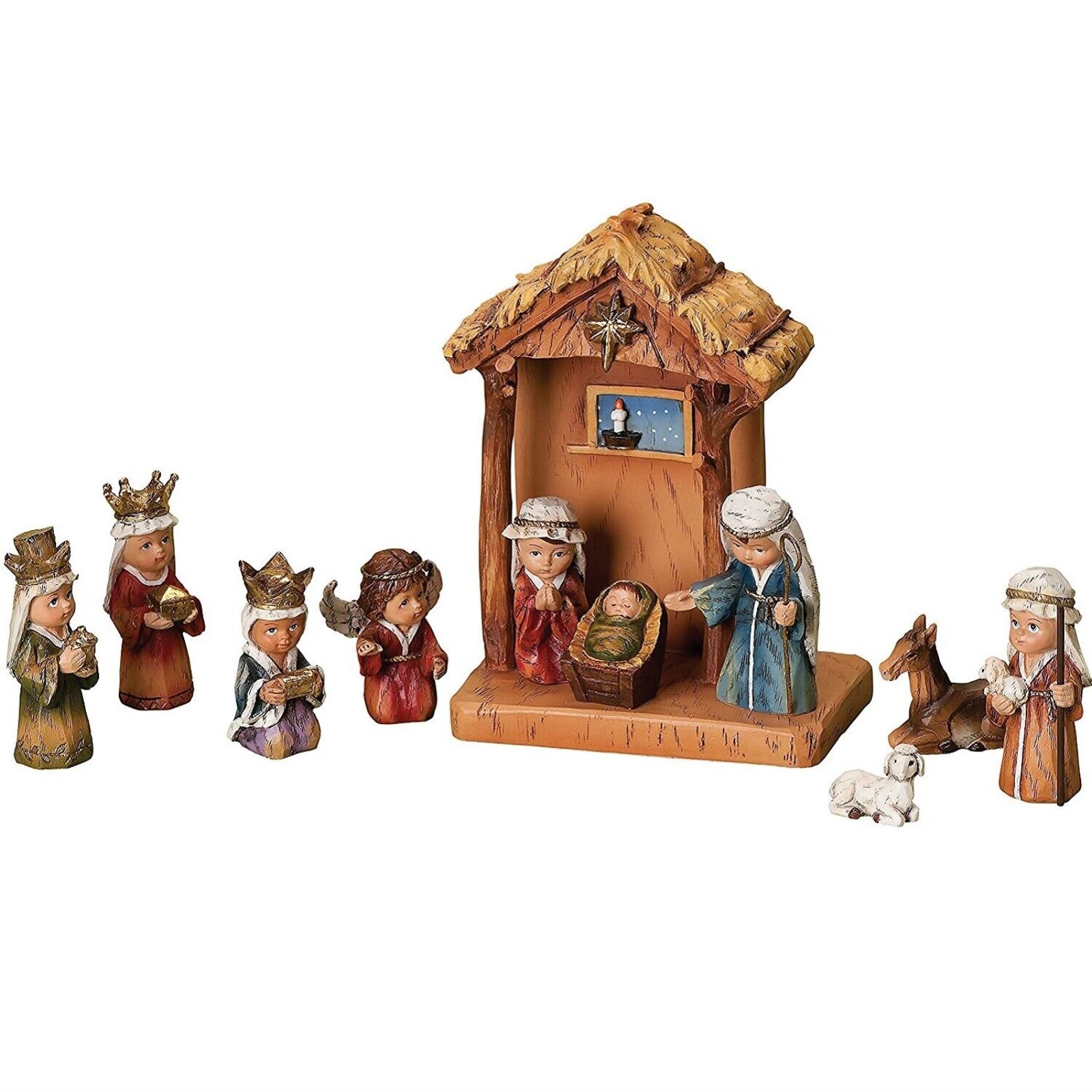 - Set includes Baby Jesus, Mary, Joseph, The Three Wisemen, Angel, Shepherd, sheep, donkey and stable