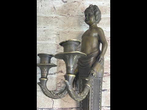 The boy's half-nude form is covered with a cloth that drapes elegantly over the lower half of his body. Directly below him, a long, ladder-like piece extends downward, adding an intriguing visual element to the design. This candle holder is far from ordinary; it's a piece of art that will not only hold your candles but also decorate your home in a truly unique way.