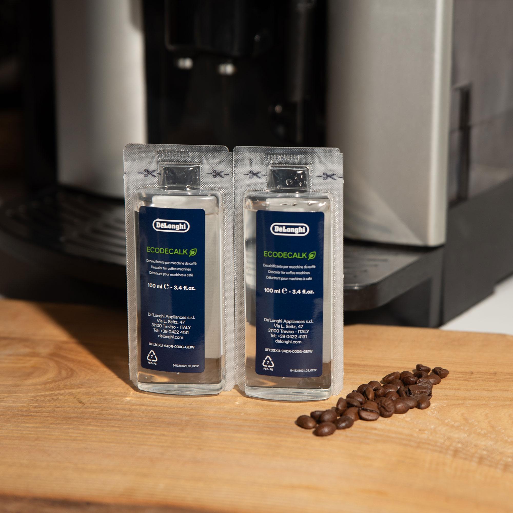 De'Longhi empfiehlt den EcoDecalk Entkalker für alle seine Kaffeemaschinen. Die perfekte Formel ist effektiver gegen Kalk und sanfter zur Maschine als herkömmliche Entkalker auf Zitronensäurebasis. In diesem umweltfreundlichen Entkalker wird natürliche Milchsäure aus Pflanzen verwendet, die die Umwelt nicht verunreinigt.