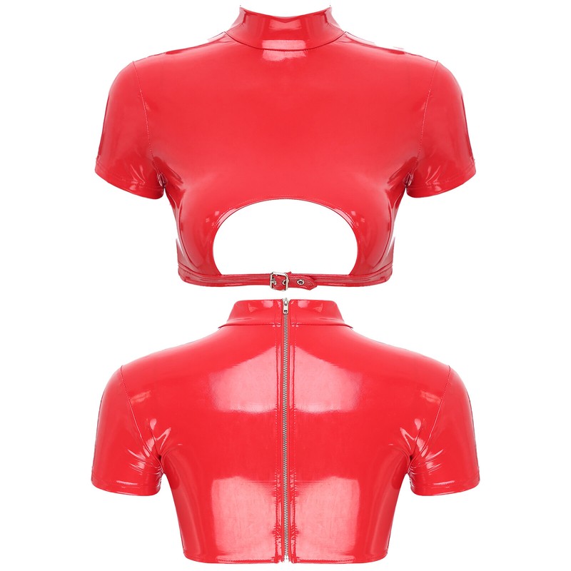 Women’s crop top is designed with mock neck, short sleeve, back zipper closure and slim fitting, which is must-have for disco party.