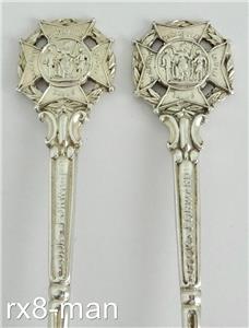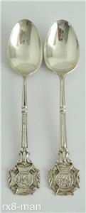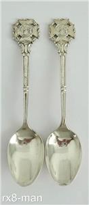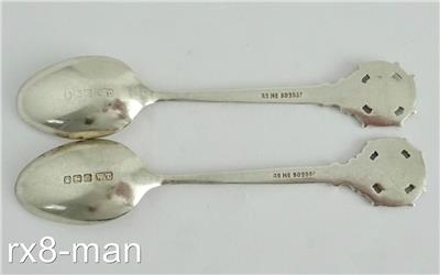 This superb vintage solid silver pair of teaspoons are for the Society of Miniature Rifle Clubs. They have plain oval bowls with "Look Forward" raised on the stems and the terminals being the Society of Miniature Rifle Clubs emblem. They are hallmarked to the back of the bowls with the Sheffield assay office Crown, the Lion Passant denoting solid sterling silver, the date letter W for 1914 and the Makers mark W.T, please see all the additional photos as they form part of the description.