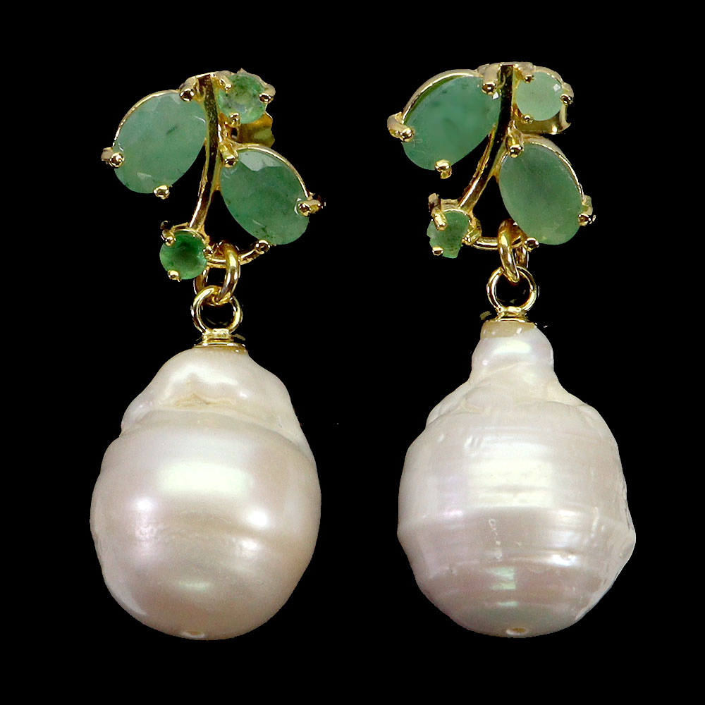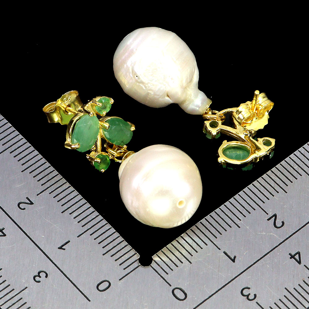 925 Sterling Silver Earrings Oval Emerald 6x4mm Pearl No USA Import Fees
