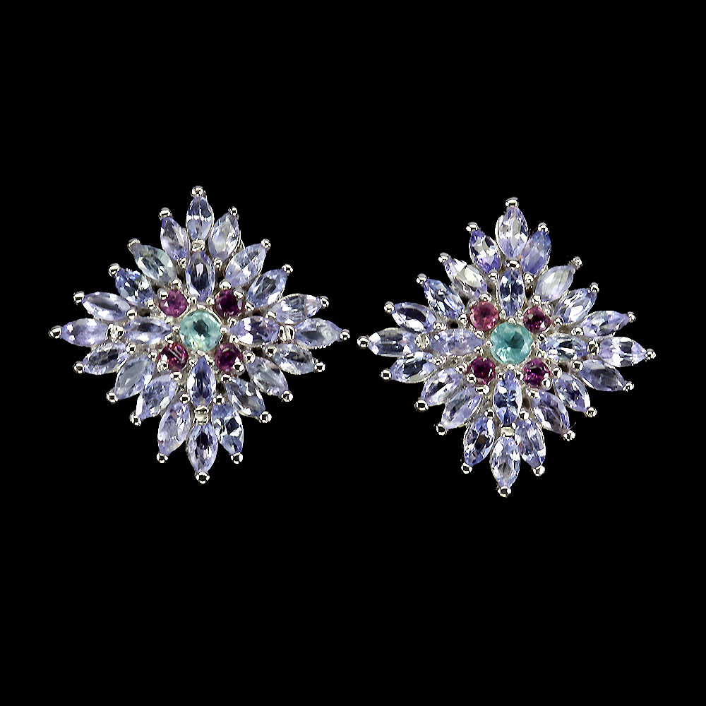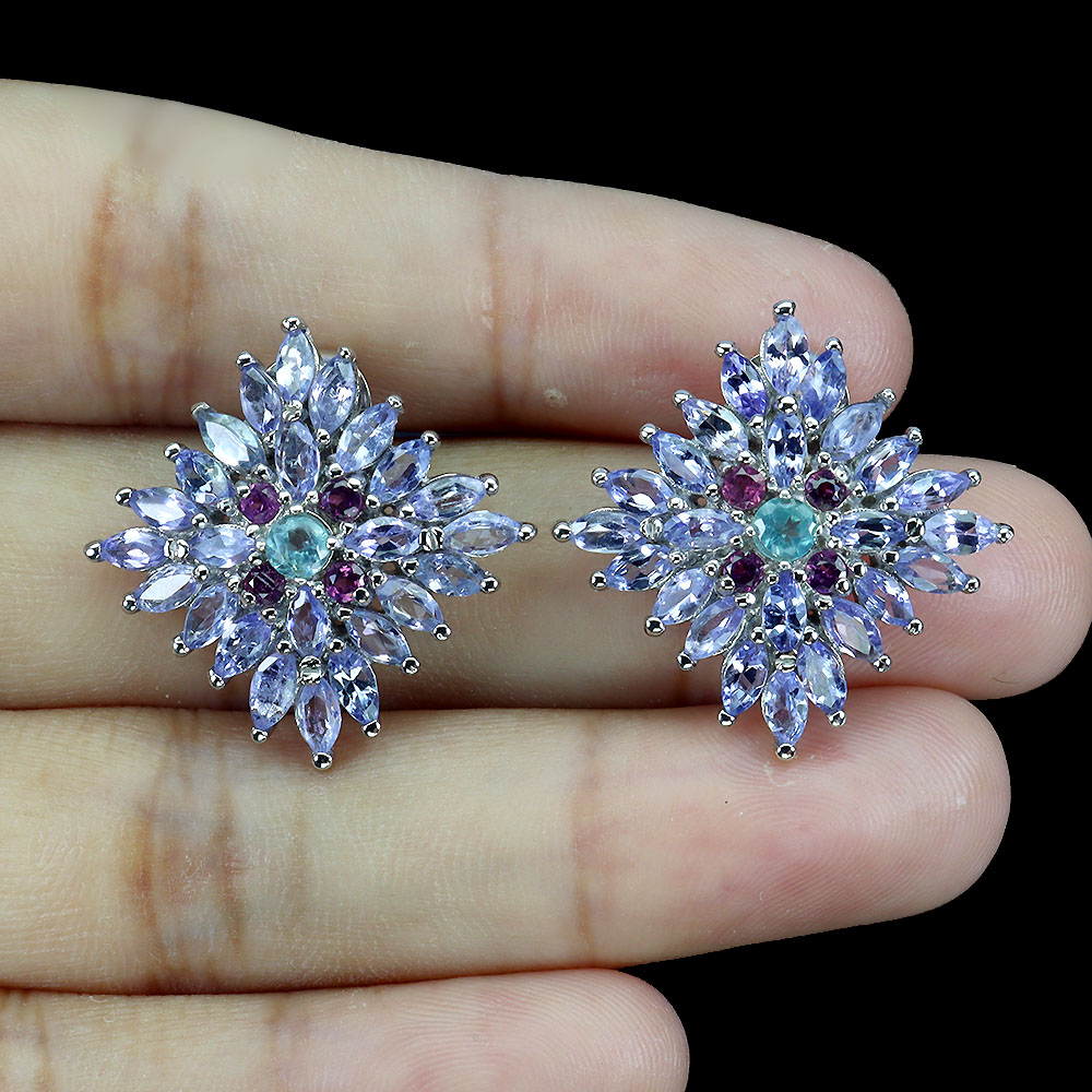 925 Sterling Silver Earrings Tanzanite Emerald Gemstone No USA Import Fees
