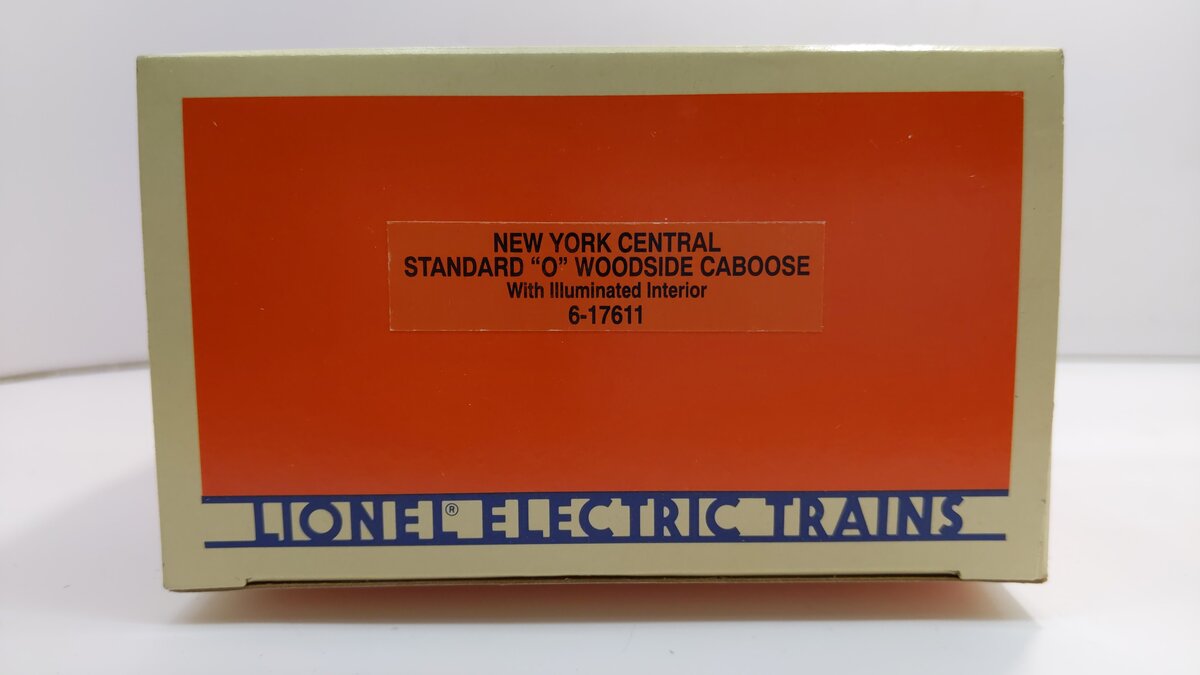 Here is a Lionel 6-17611 O Gauge New York Central Illuminated Woodside Caboose #6003. This caboose is scale length and features a lighted interior, smokestack, die-cast trucks, operating couplers, metal wheels and axles.
