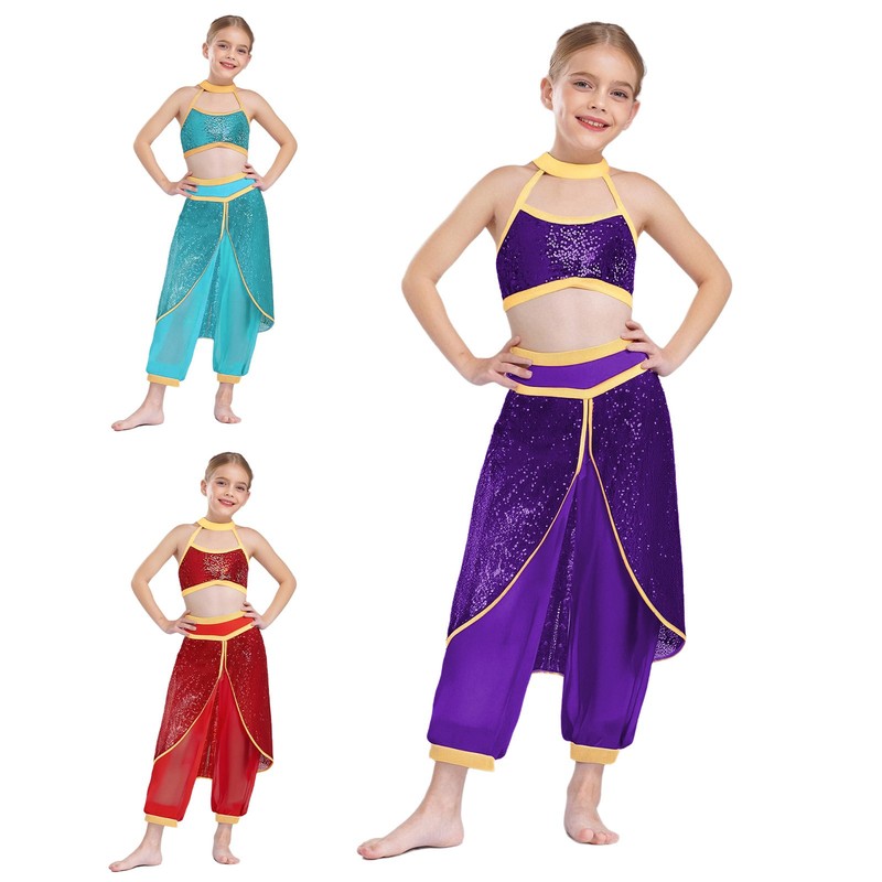 Glitter sequin and patchwork dance outfit, makes your girl look stylish and fashionable.