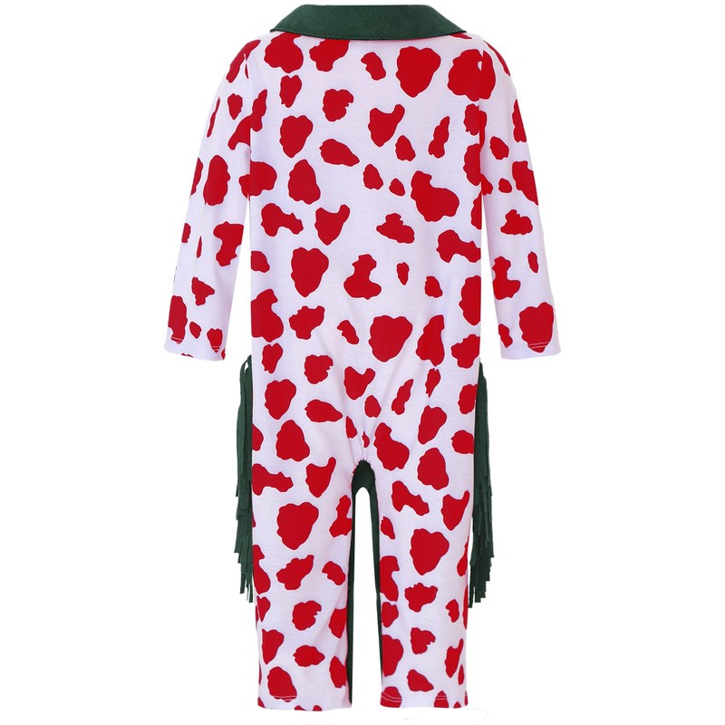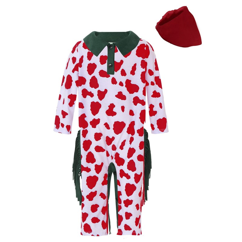 Designed with cow pattern and fringes tassels at both sides, this classic cowboy costume makes baby stylish.