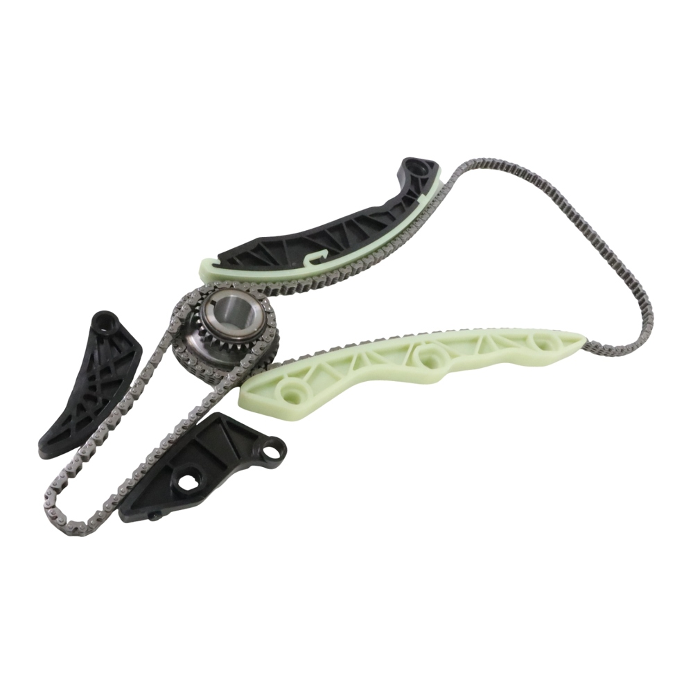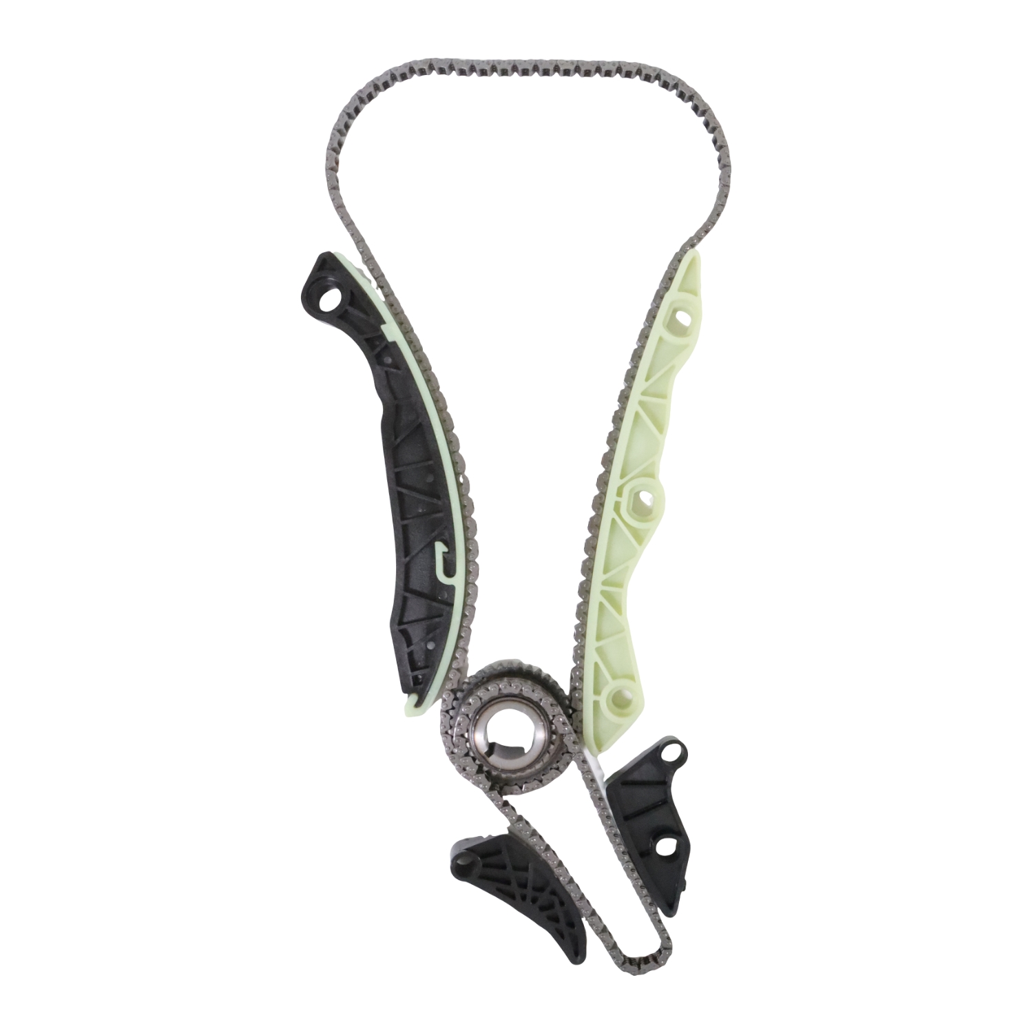 Timing chain noise is commonly most noticeable during cold startup of the vehicle when oil pressure and oil flow is at its lowest. Excess slack in the timing chain can cause a rattling sound or even a clanking sound if the slack is severe enough to cause the chain to contact the timing chain cover. If the engine is equipped with a hydraulic timing chain tensioner, the noise may disappear or lessen as the engine oil warms up and the tensioner removes some of the slack. If the timing chain wear is great enough so the tensioner can no longer compensate for the slack, the noise may continue even after warming up