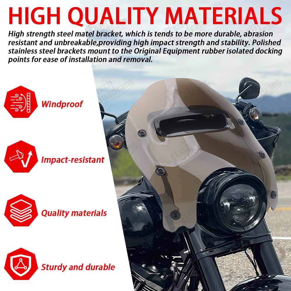 1.Windshield made of high impact ABS plastic with smooth surface,Custom-molded designs , flexible and strong, hard texture, anti-sand anti-stone, not easily be scratched or cracked, riding safety.