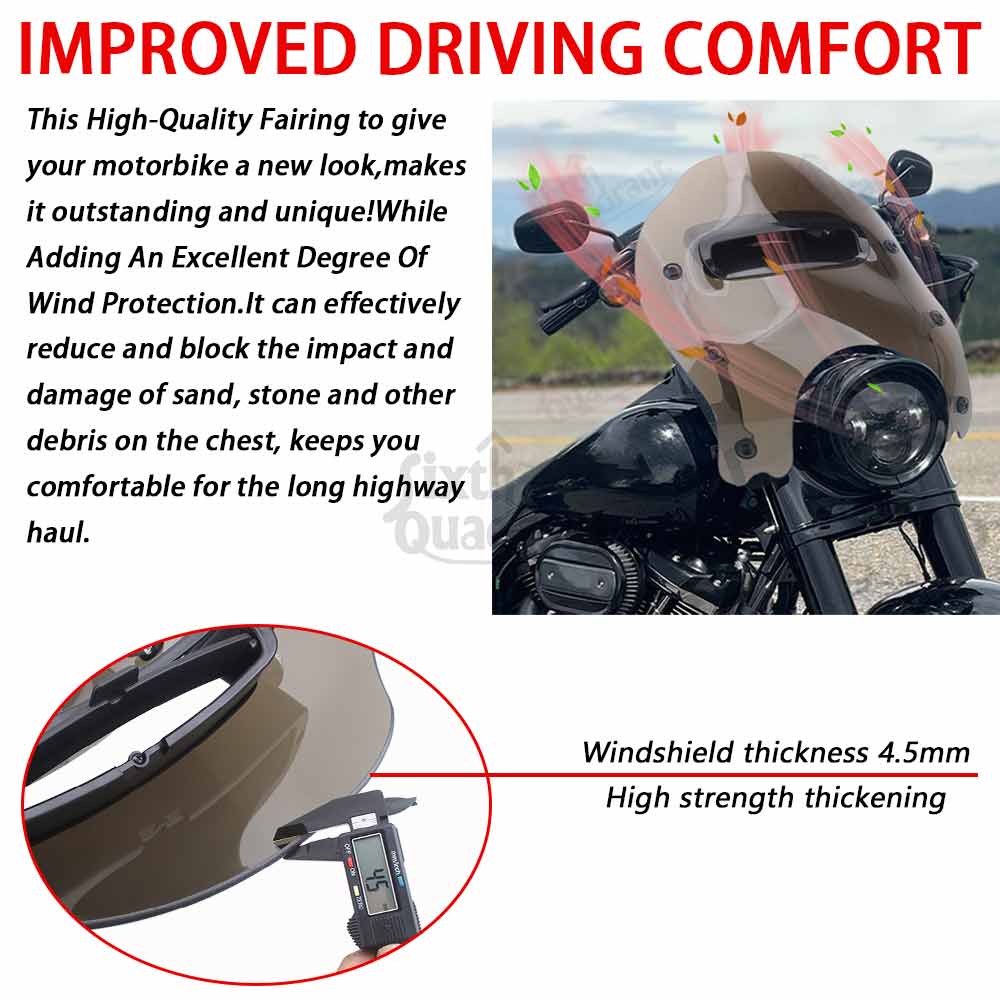 2.This High-Quality Fairing to give your motorbike a new look,makes it outstanding and unique!While Adding An Excellent Degree Of Wind Protection.It can effectively reduce and block the impact and damage of sand, stone and other debris on the chest, keeps you comfortable for the long highway haul.