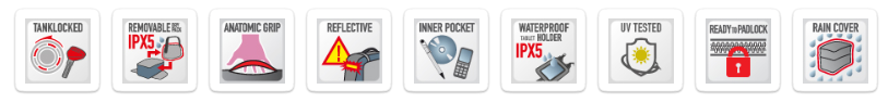 Bolsa de tanque con tanque con bolsa interna impermeable y puerta de mapa extraíble, capacidad de 20 litros Materiales: • 1200D W/R poliéster con alta tenacidad y caparazón de espuma de polímero. • Insertos de hipalon. • Material externo de alta resistencia UV (Ref. ISO 4892 - 2) Equipo: • Bolsa interna impermeable extraíble con impermeabilización IP65 (resistente a las fuertes lluvias y condiciones extremas) • 2 bolsillos externos con cremallera • Pocket de navegador/teléfono móvil incluido en la tapa • Motivos reflexivos para una mayor visibilidad • Mapa de la puerta/tableta a prueba de agua con lona extraíbles soldado de alta frecuencia • Spreads para el transporte de mochila • Rolado extraíble del bolsillo trasero para cubrir el ataque base cuando la bolsa se transporta a la mochila • Cubra la antipoggia con ventana transparente El sistema bloqueado por tanque le permite asegurarse de que la bolsa de la brida específica, montada en la tapa del tanque, a través de la tecla de bloqueo de seguridad para garantizar una mayor seguridad. Puede colocar y soltar la bolsa del tanque sin la ayuda de la llave, Usándolo solo cuando deja la motocicleta desatendida. Bloquear con llave de bloqueo de seguridad posiblemente uniforme a la de la caja superior, maletas laterales, base de tranvía, Soporte de caja de herramientas, con kits específicos de SL102-SL103-SL105. Para combinar necesariamente con bridas específicas bf_ _ Hecho en Italia. La descripción puede estar sujeta a cambios por parte del proveedor sin previo aviso.