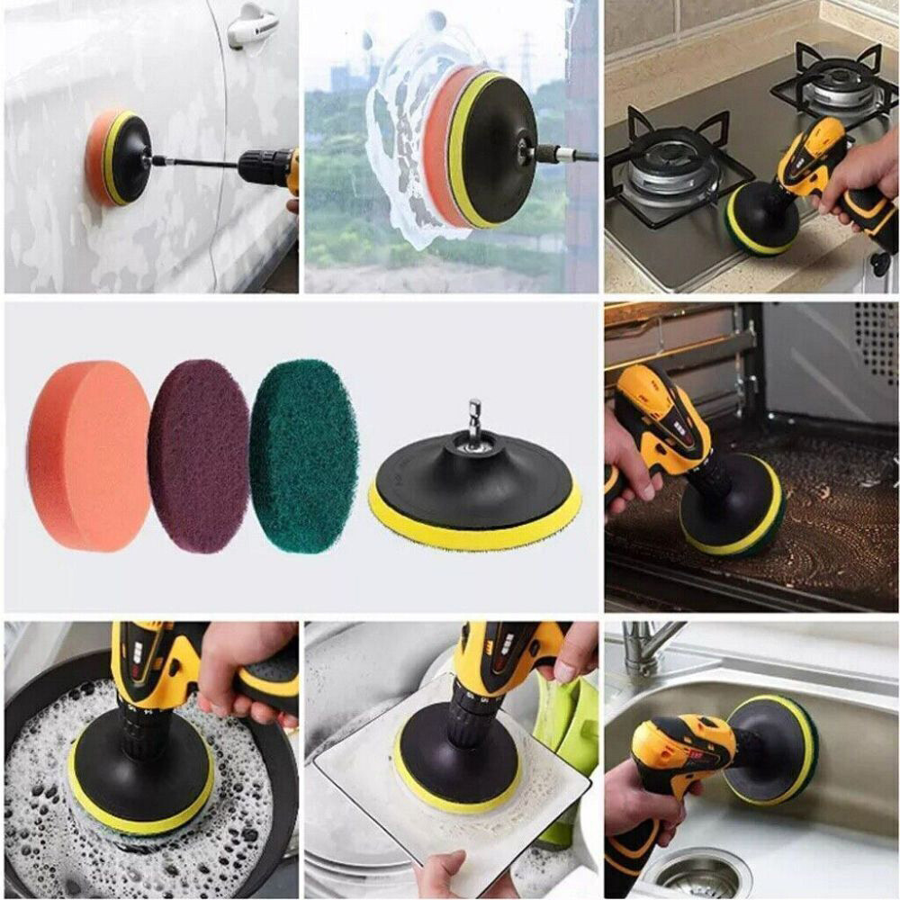 Bohrbürstenaufsatz Breite Reinigungsanwendung: Jede Bohrbürste des Power-Schrubber-Sets für den Hausgebrauch hat ihre spezielle Form und Größe, perfekt für das angetriebene Schrubben auf Küchenoberflächen, Badezimmern, Wannen, Duschen, Waschbecken, Wasserbeckenfliesen, Mörtel, Glasfaser, Haus, Auto, Boot und so