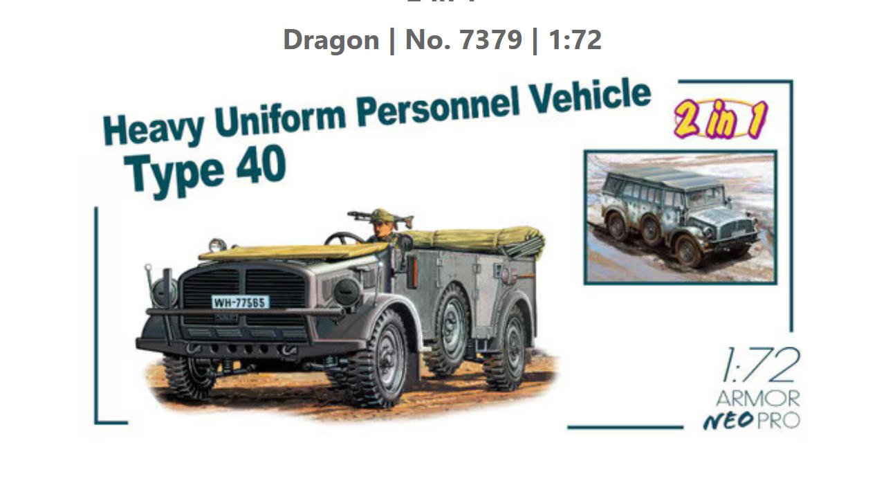 - 1/72 scale reproduction of the Horch Type 40, a large German military vehicle from World War II