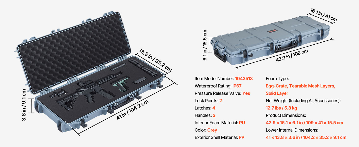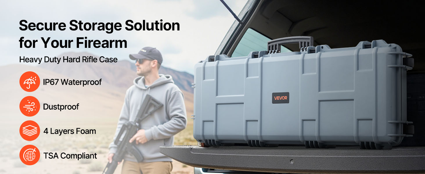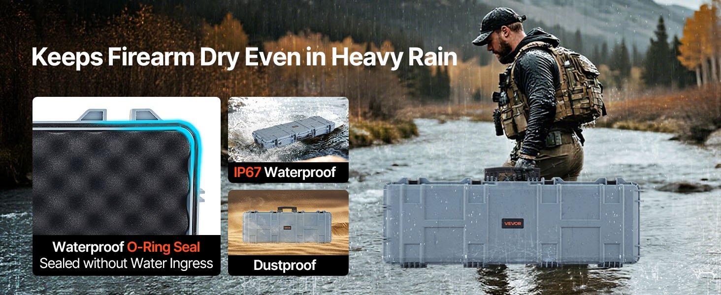 - Impermeabile e antipolvere IP67: questa custodia rigida per fucile presenta un esterno robusto e resistente agli urti con protezione IP67 da acqua e polvere, garantendo un design completamente sigillato che impedisce l'ingresso di acqua