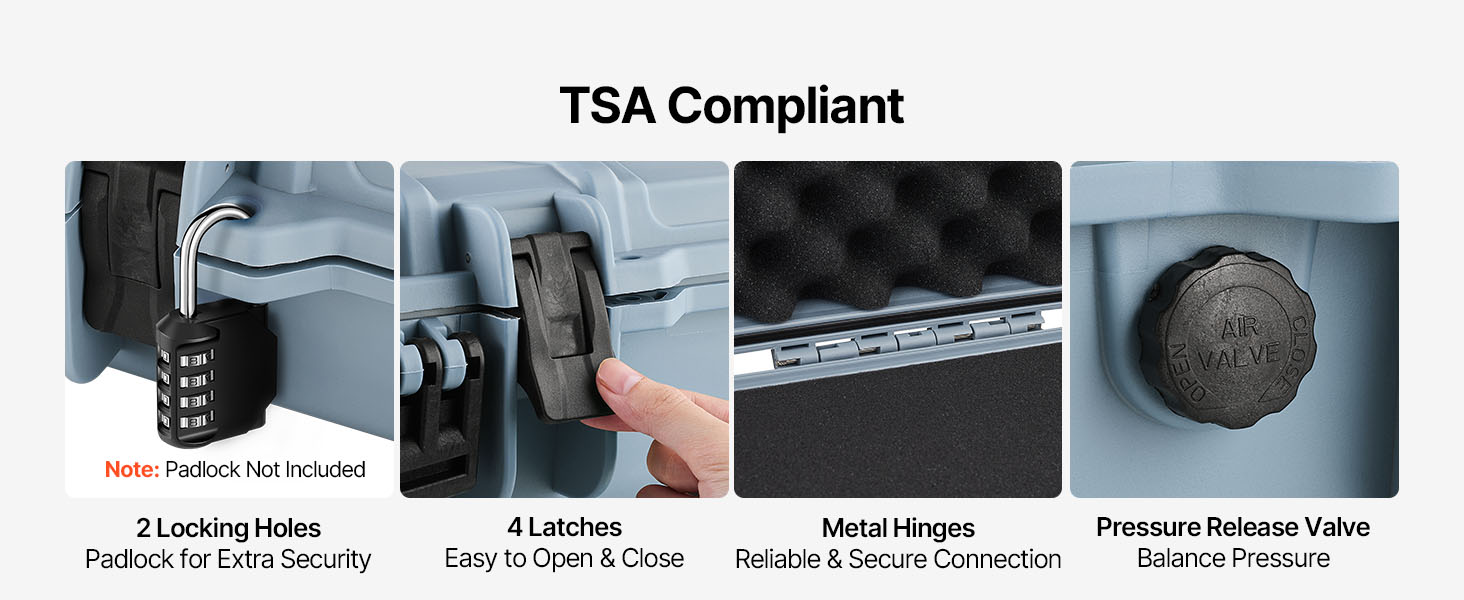 - Conforme agli standard TSA: questa custodia per fucile soddisfa gli standard TSA ed è adatta per viaggiare. Dotata di molteplici meccanismi di chiusura, è possibile fissare lucchetti ai fori integrati N.B. I lucchetti non sono inclusi