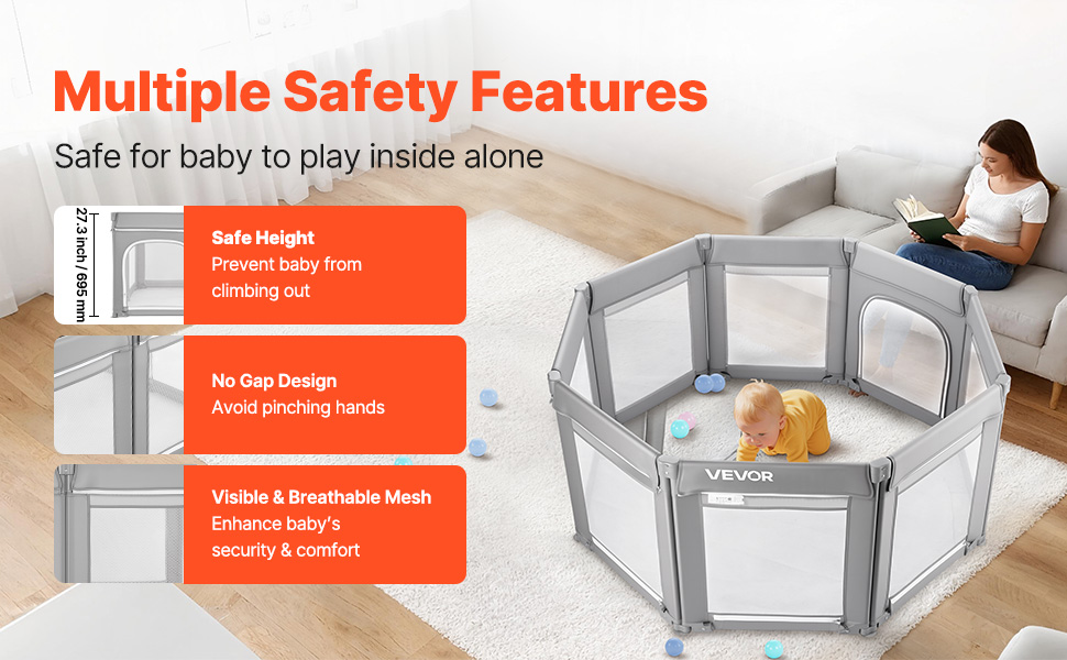 Lascia che il tuo piccolo giochi in sicurezza mentre tu ti godi la tranquillità. Questo recinto per bambini è dotato di un'altezza scientificamente progettata per impedire al bambino di arrampicarsi fuori, una struttura senza fessure per evitare schiacciamenti alle dita.