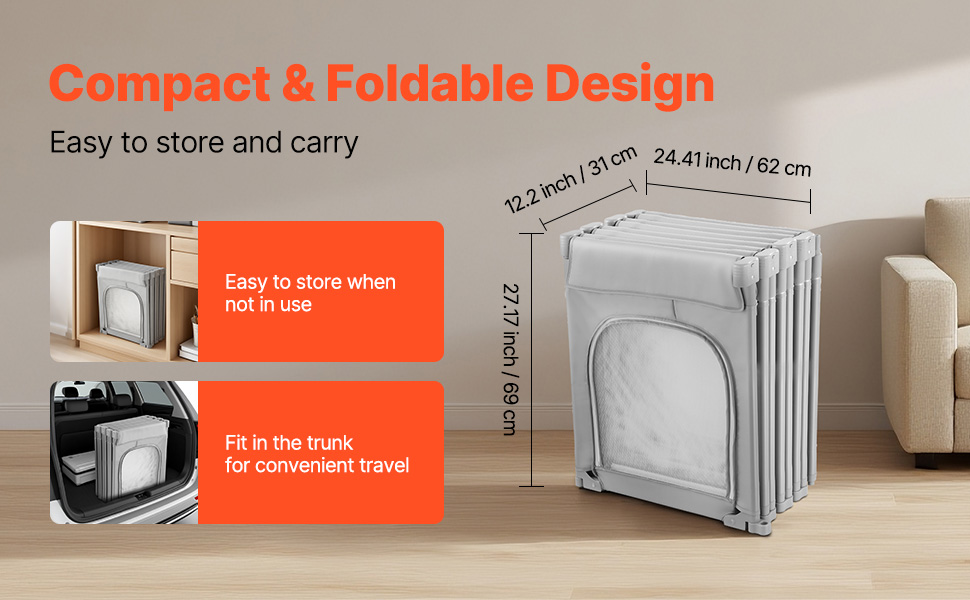 Il design pieghevole semplifica lo stoccaggio: basta ripiegarlo quando non lo si utilizza. Abbastanza compatto da stare nel bagagliaio dell'auto, questo recinto per bambini piccoli è utile per i viaggi all'aperto, la spiaggia, il parco o le visite in famiglia.