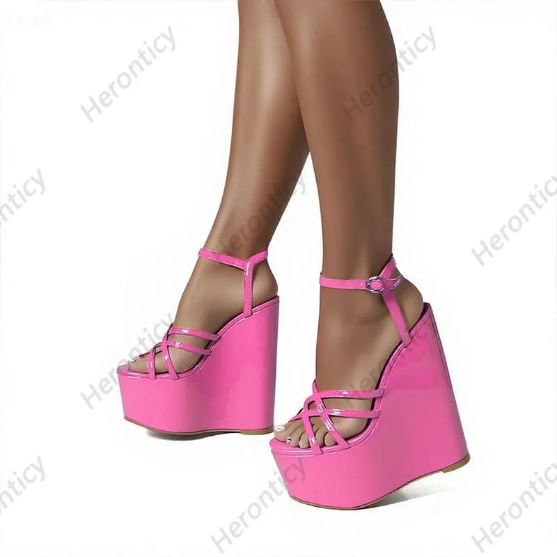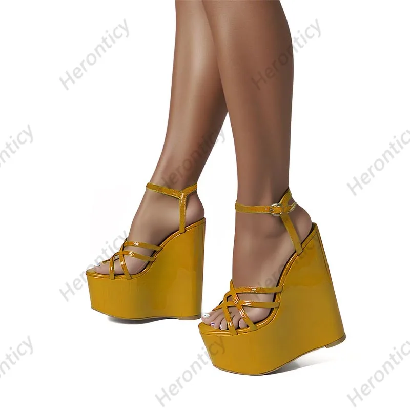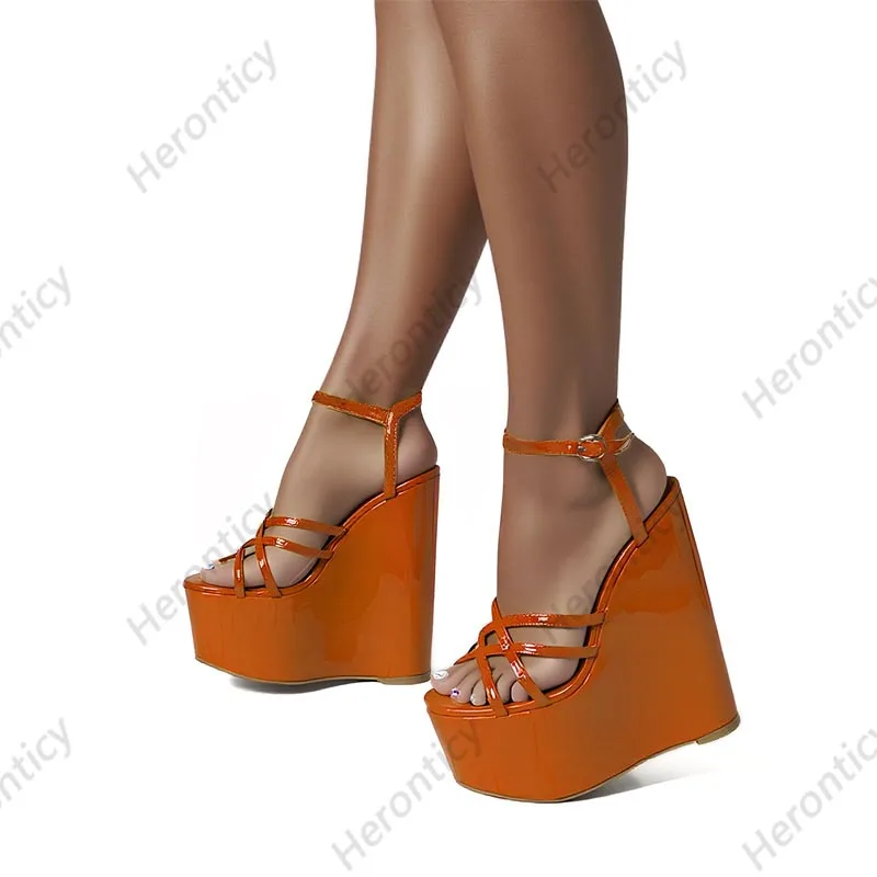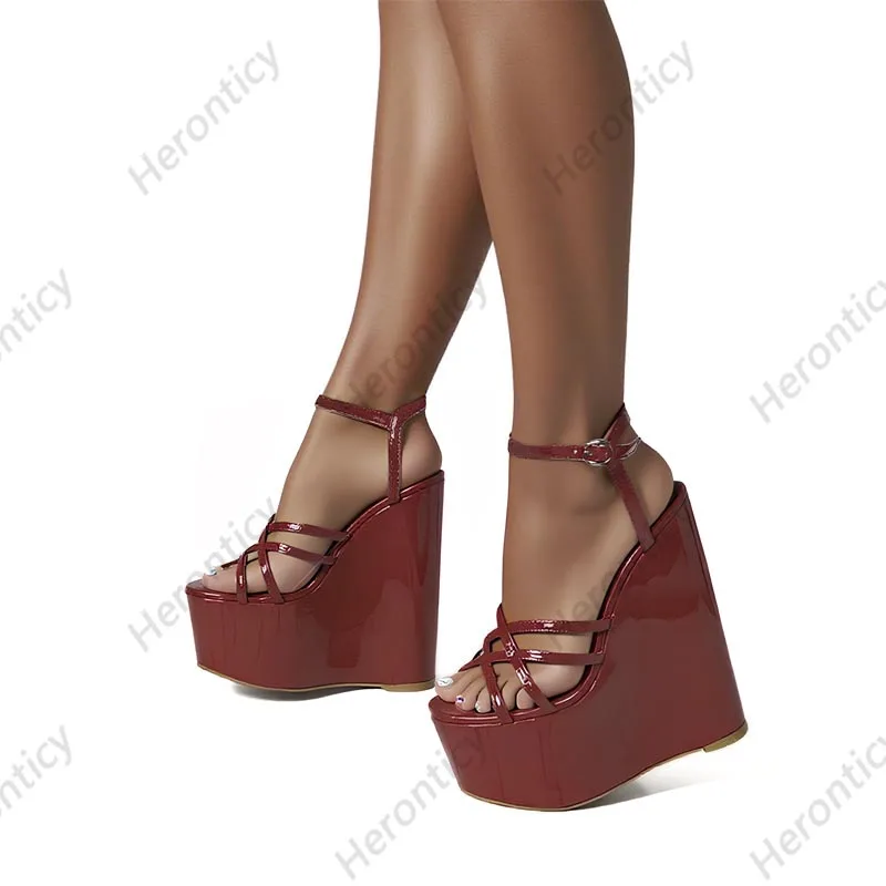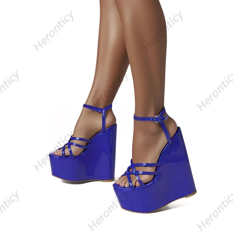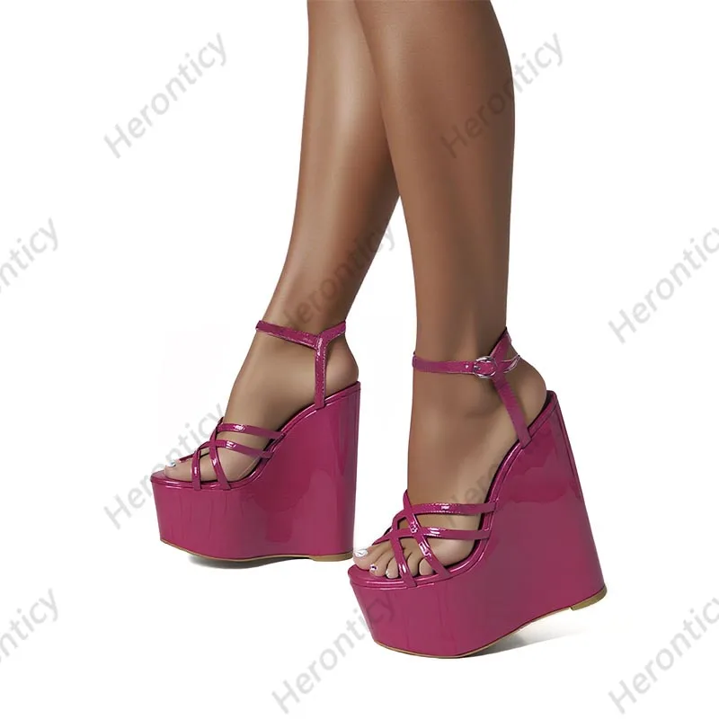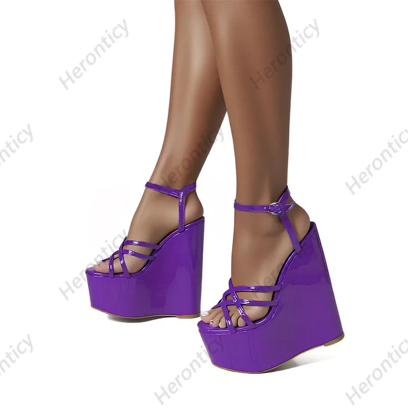 Heronticy Handmade Women Ankle Strap Sandals Wedges High Heels Round Toe Pretty Purple Party Shoes Ladies US Plus Size 5-16