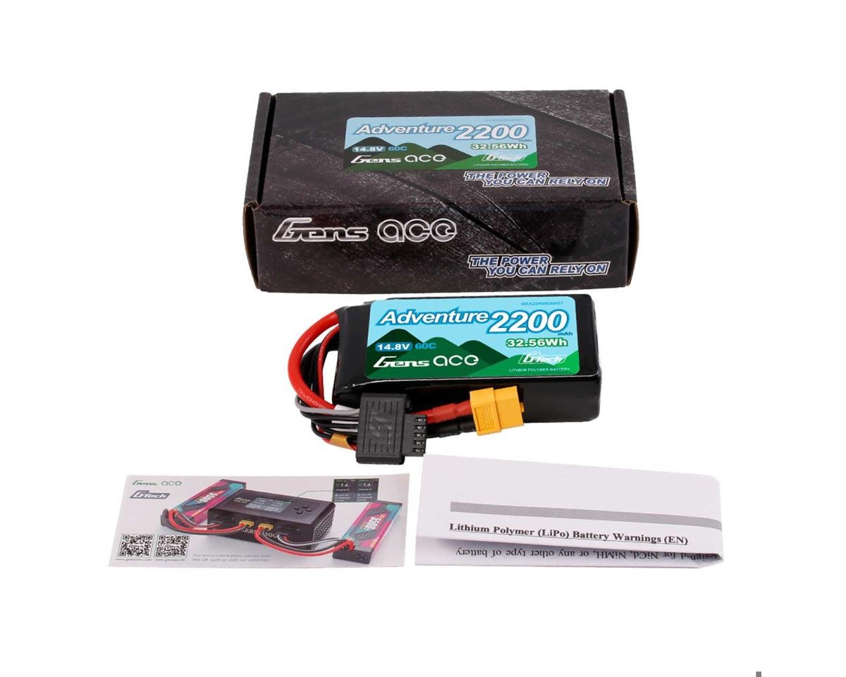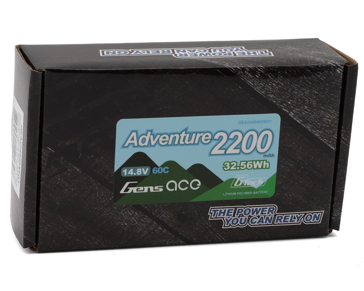 This is a Gens Ace 224S60X6GT 14.8V/2200mAh 4S 60C G-Tech Adventure LiPo Battery with XT60 Connector.