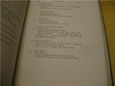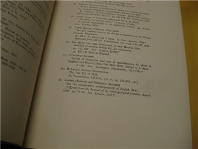 Bibliotheca anglo-judaica compiled by Joseph Jacobs and Lucien Wolf (London, 1888) and a catalogue of the material bearing on the study of Anglo-Jewish history which is to be found in the Mocatta library and the allied collections housed in University college, London. cf. Introd.