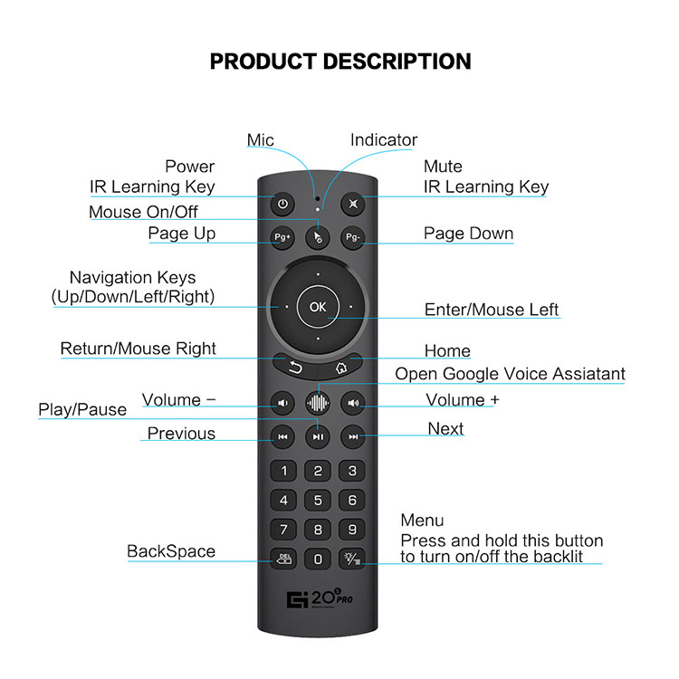 l Model: NO. G20SPRO (Voice + Gyroscope + Backlight)