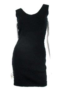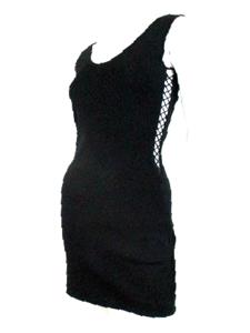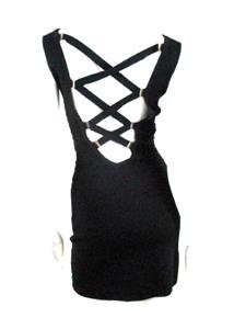 TEMPERLEY LONDON BLACK STRETCH KNIT BODYCON MINI DRESS WITH SCOOP NECKLINE, CUT OUT LATTICE SIDES, ELASTIC BACK STRAPS WITH GOLD TONE HARDWARE, PULLOVER STYLING.