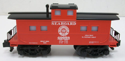 Here is an American Flyer 6-48724 S Scale Seaboard Caboose #49658 that features interior lighting, die-cast metal sprung trucks, operating knuckle couplers, metal wheels and axles. Road number 49658.