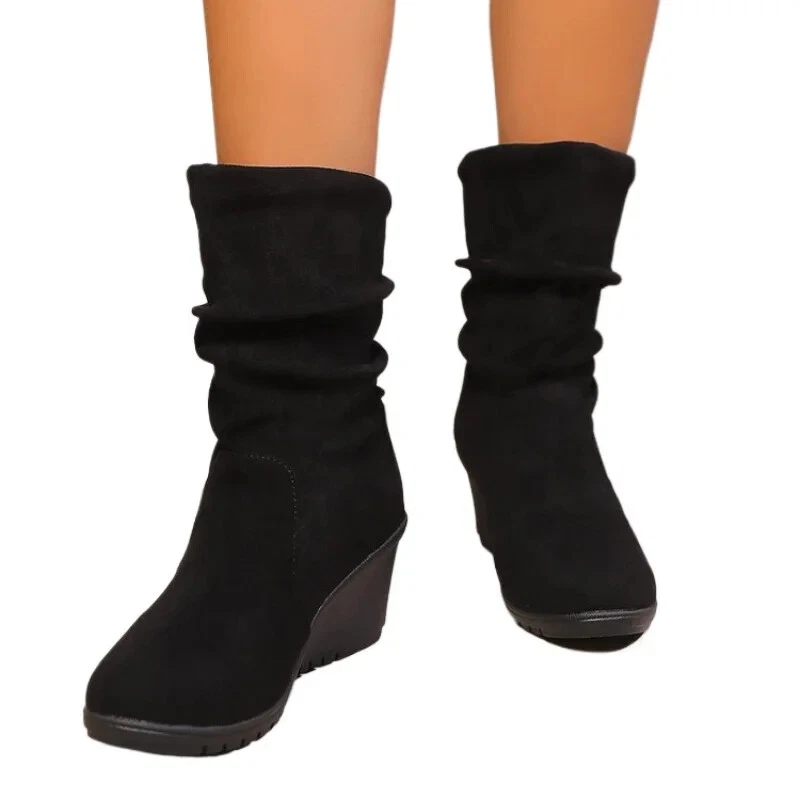 Winter Women Mid Calf Boots Wedge High Heel Vintage Casual Ladies Riding Boots