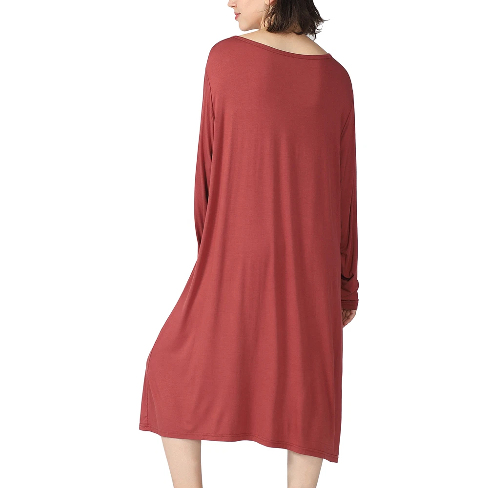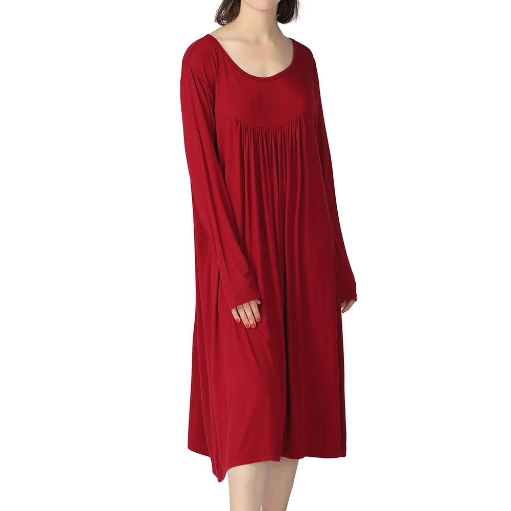 Women Plus Size Soft Nightgown Long Sleeve Scoop Neck Stretch Pajama Sleep Dress