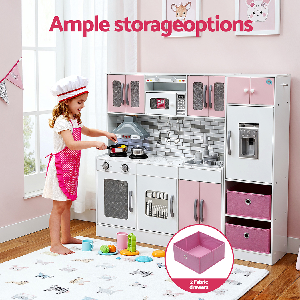 The built-in water cycle system adds hands-on fun for dishwashing.This complete set comes with a fridge, microwave, oven, coffee maker, ice maker, and a variety of accessories, keeping playtime exciting and engaging.
