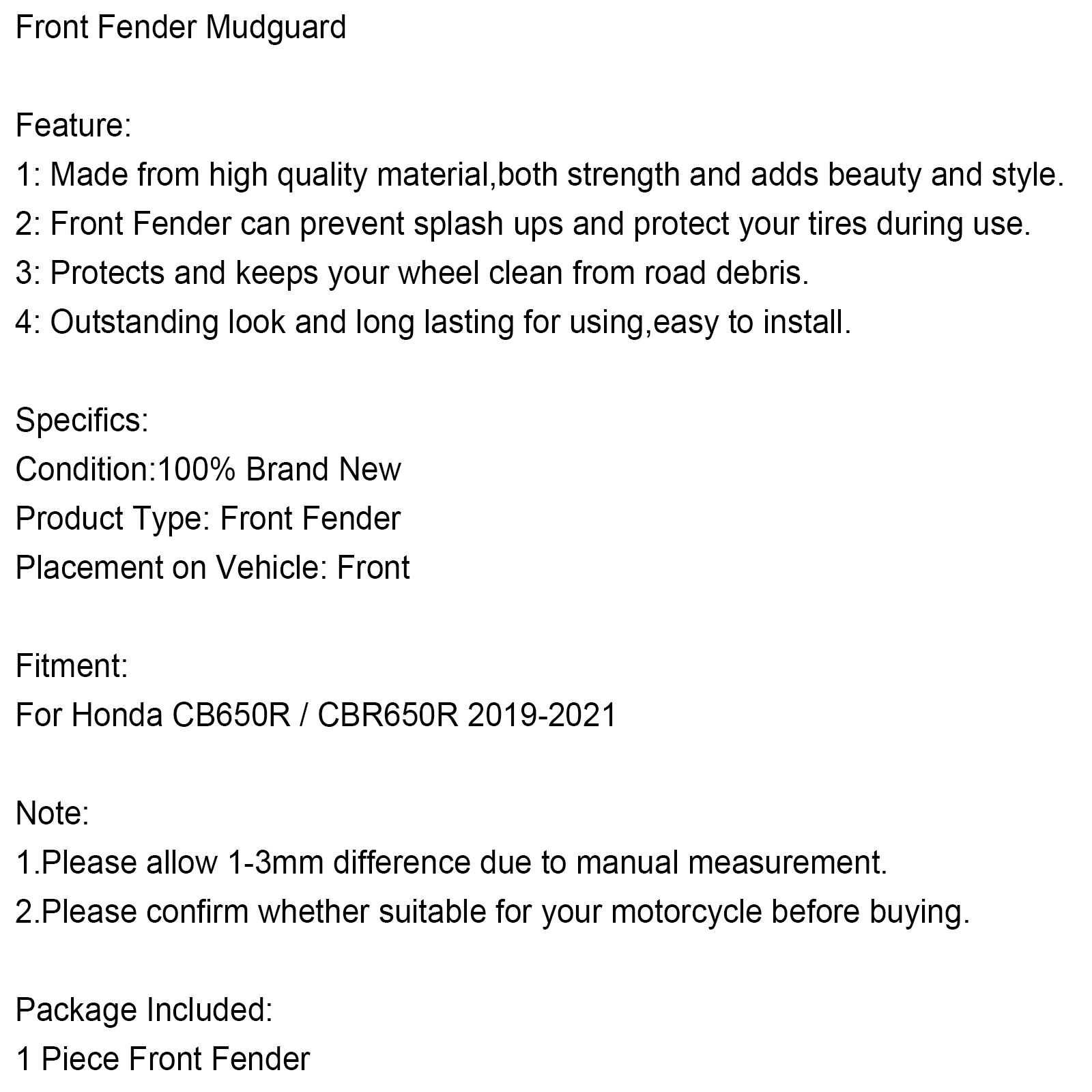 2: Front Fender can prevent splash ups and protect your tires during use.
