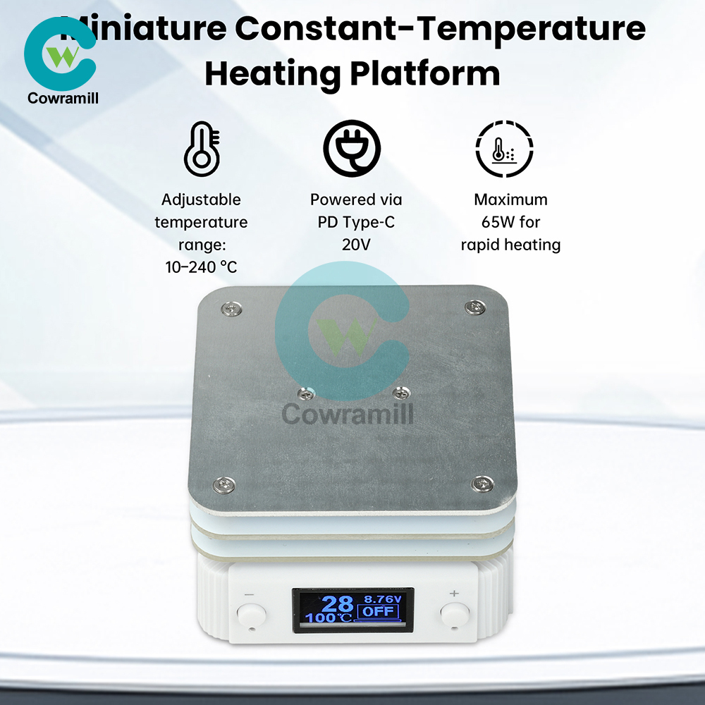 Product Specifications: Product Name: Mini Constant Temperature Heating Pad Power Supply: PD 65W 20V 3.25A Fast Charger Input Voltage: 20V Heating Power: 65W (Max) Input Current: 3.25A Charging Port: PD Type-C interface Adjustable Temperature: 10°C–240°C Heating Plate: Aluminum-based heating plate Insulation Plate: PCB insulation plate Base Material: ABS+PC