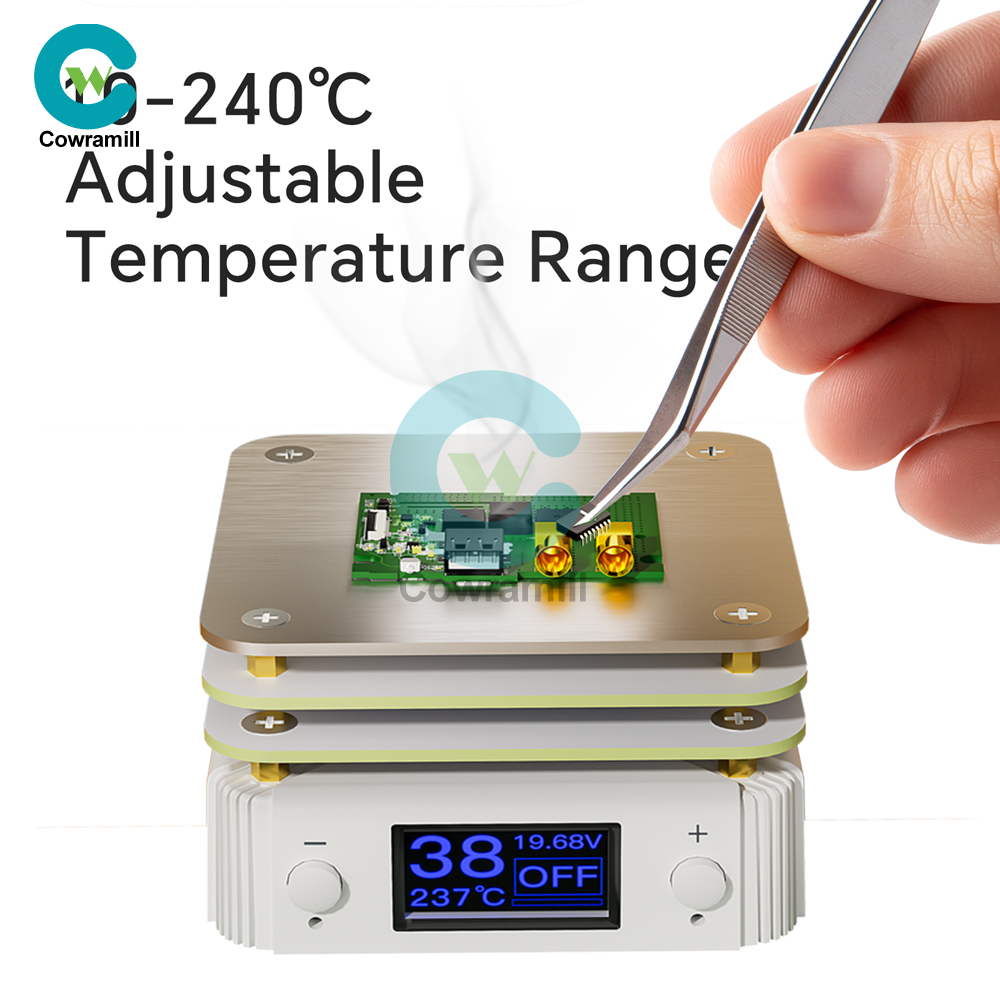 Features: 1. Wide Precision Temperature Control Range: 10°C–240°C digital display adjustment meets diverse precision heating needs 2. Efficient PD Fast Charging Heating: 65W high power + aluminum-based heating plate delivers rapid temperature rise and high thermal efficiency 3. Dual-Color Safety Indicator: Blue light steady/off indicates power status; red light flashes as warning when exceeding 200°C 4. Heat-Insulated Durable Structure: PCB heat shield isolates high temperatures; non-slip base ensures safe and stable operation 5. Compact Portable Design: Small, lightweight, and compact body for effortless portability and flexible storage 6. Dual-Mode LED Display: Freely switch between Data Mode and Waveform Mode to meet diverse monitoring needs