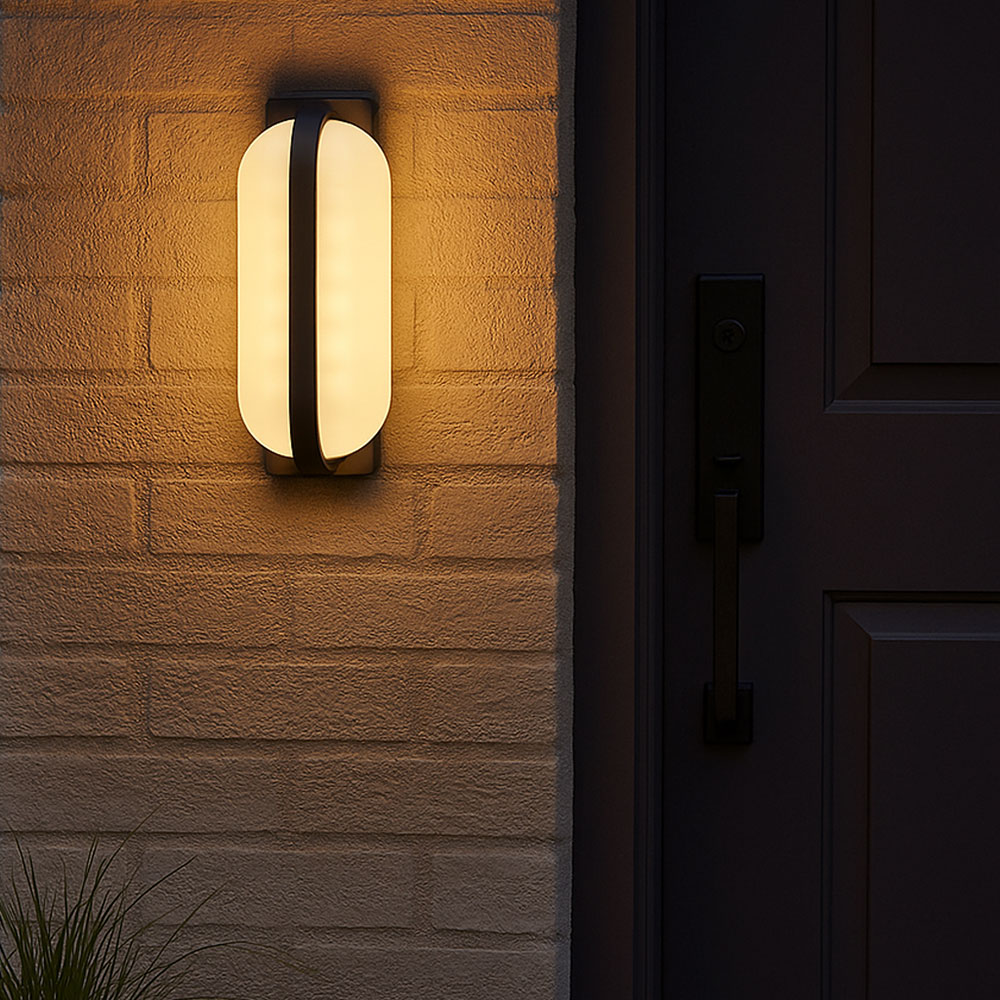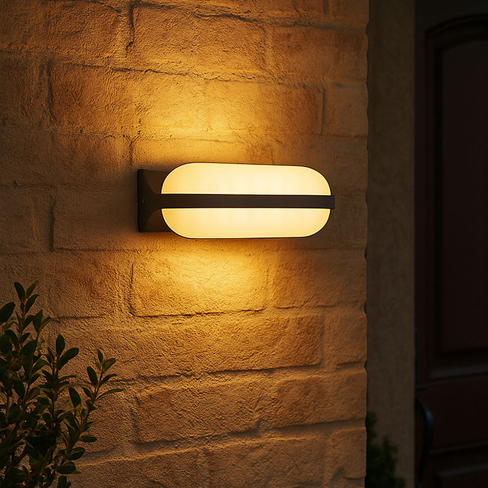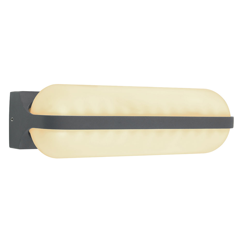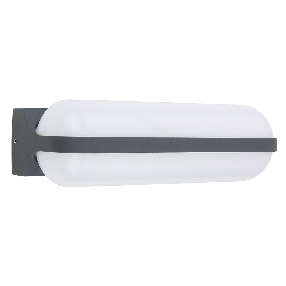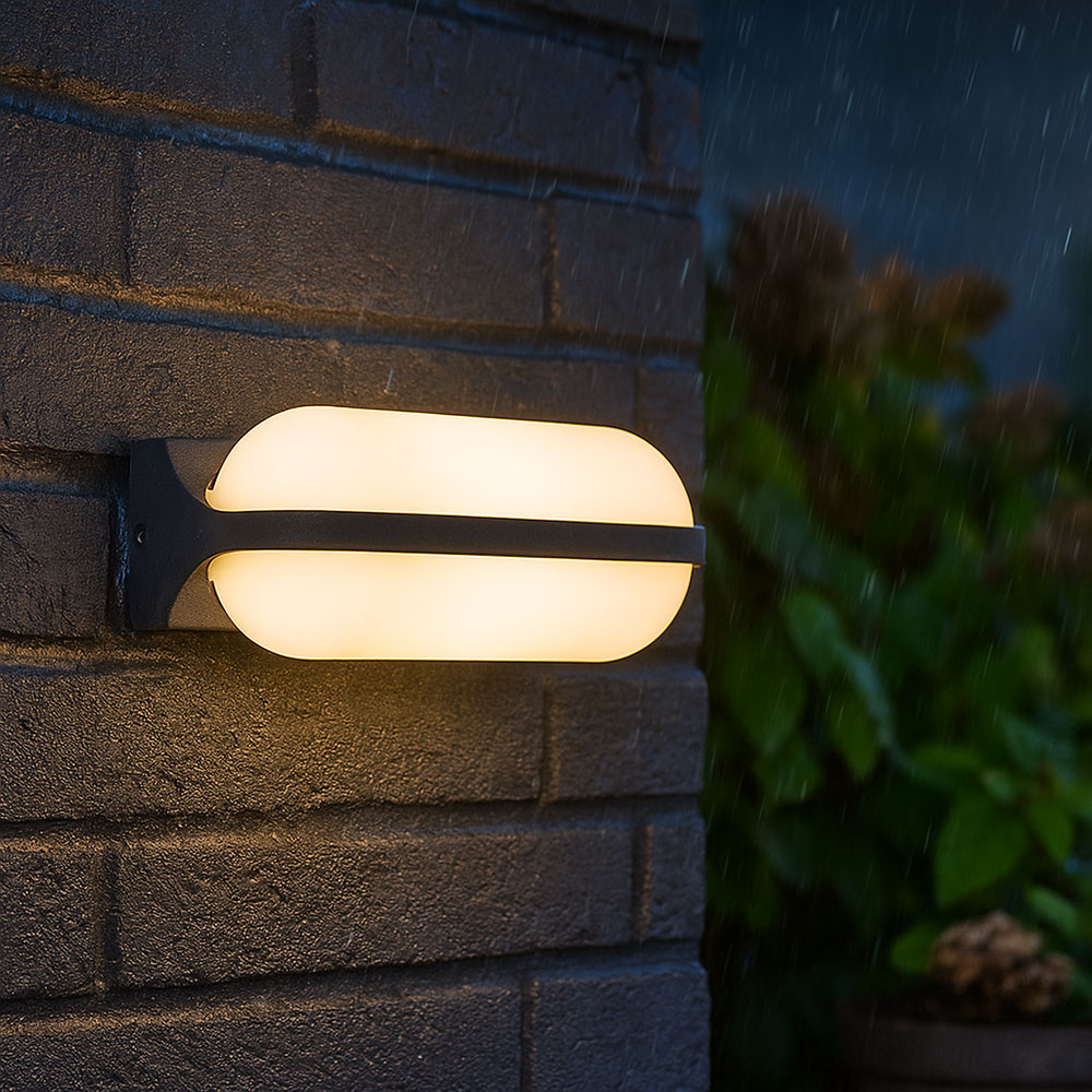 Die 26 cm breite Außenleuchte besteht aus einer runden, opalenen Kunststoffform, die formschön in den anthrazitfarbenen Aluminiumrahmen eingesetzt und nach unten gerichtet ist. Mit den inkludierten LED-Leuchtmitteln leistet sie 1270 Lumen starkes Licht bei einer angenehmen Lichtfarbe von 3000 Kelvin (warmweiß). Durch weitere Modelle der gleichen Serie können Sie das Gesamtbild in Ihren Außenbereich komplettieren.